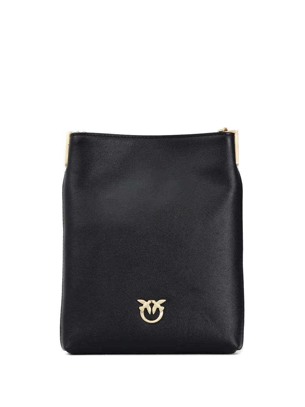 black gold-tone hardware chain-link shoulder strap concealed magnetic fastening main compartment Love Birds logo plaque