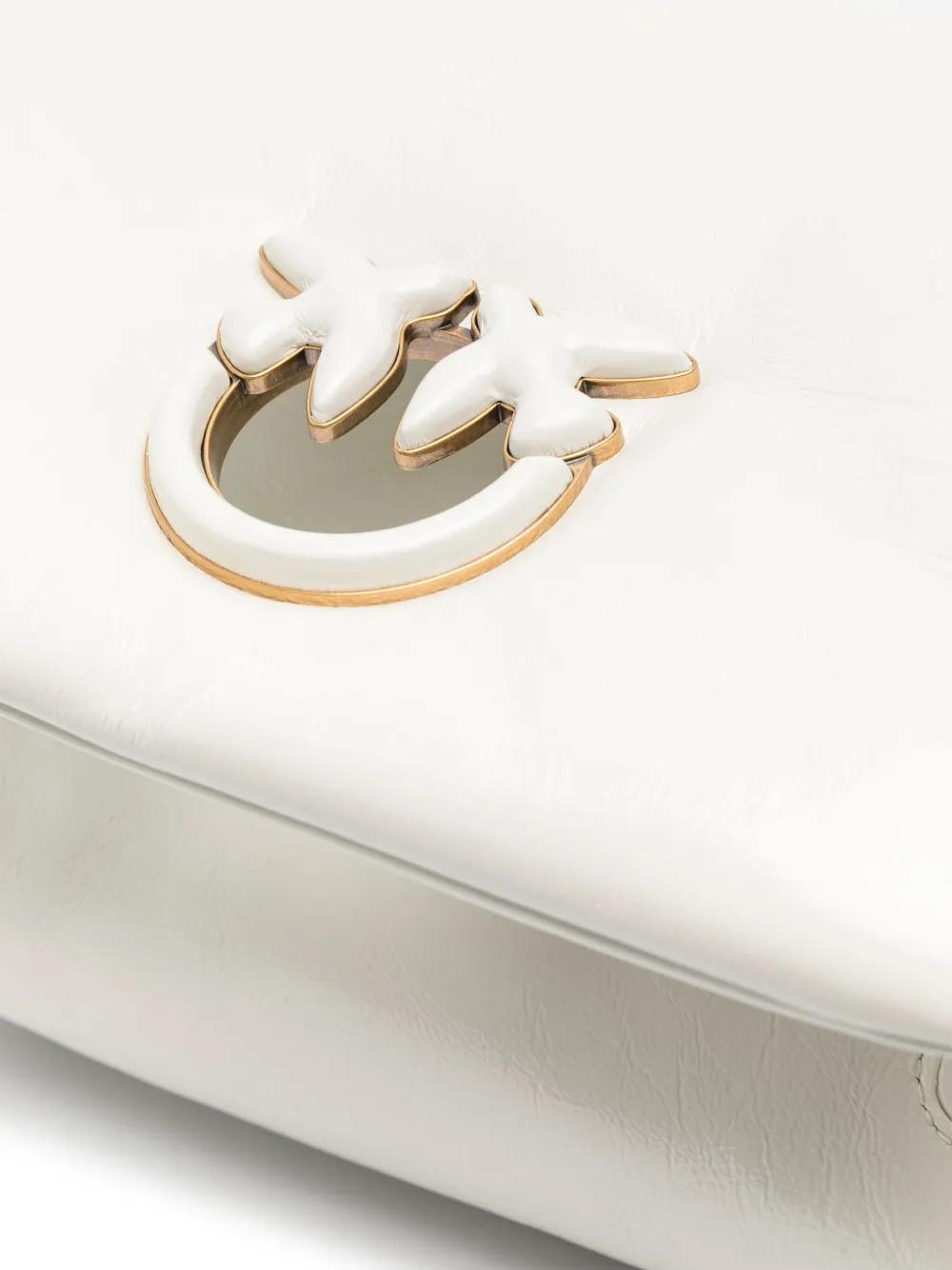 cream white calf leather signature Love Birds buckle grained texture gold-tone hardware foldover top with magnetic fastening detachable shoulder strap internal zip-fastening pocket partitioned compartment