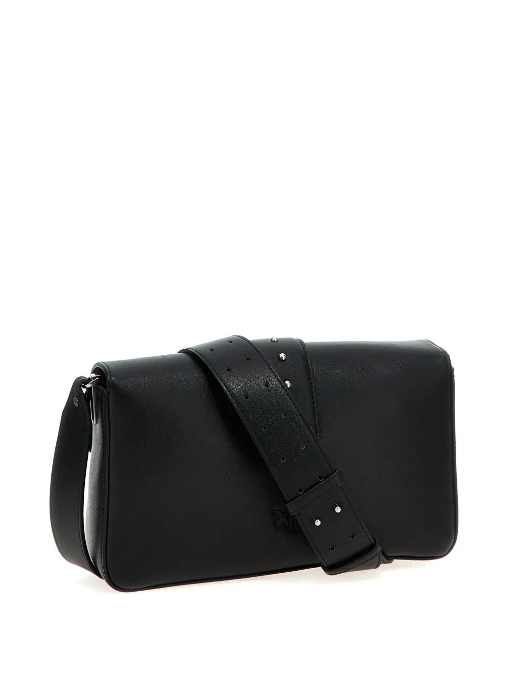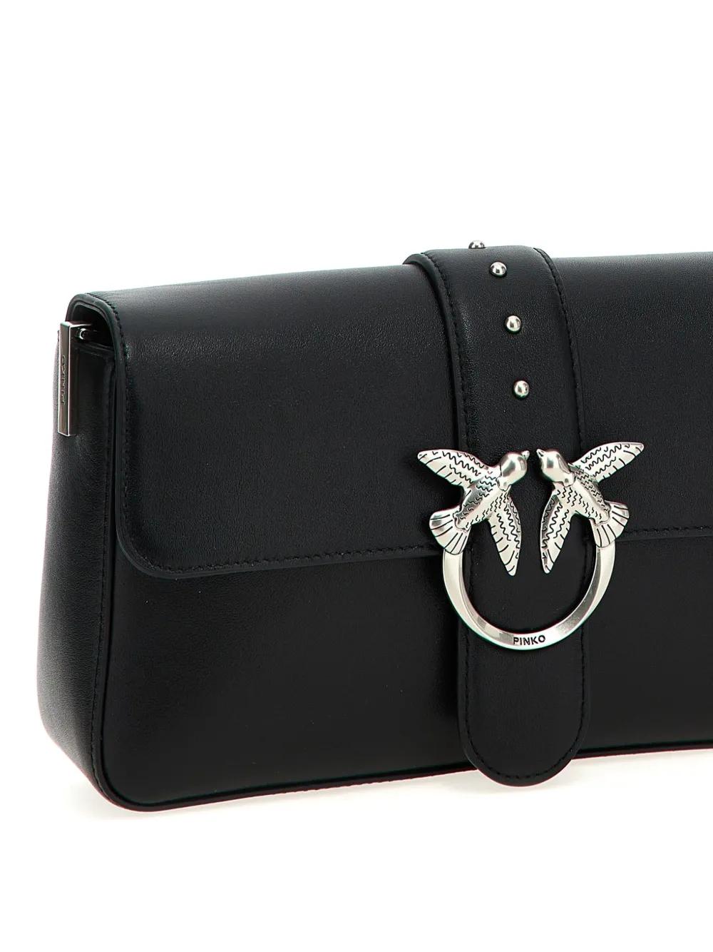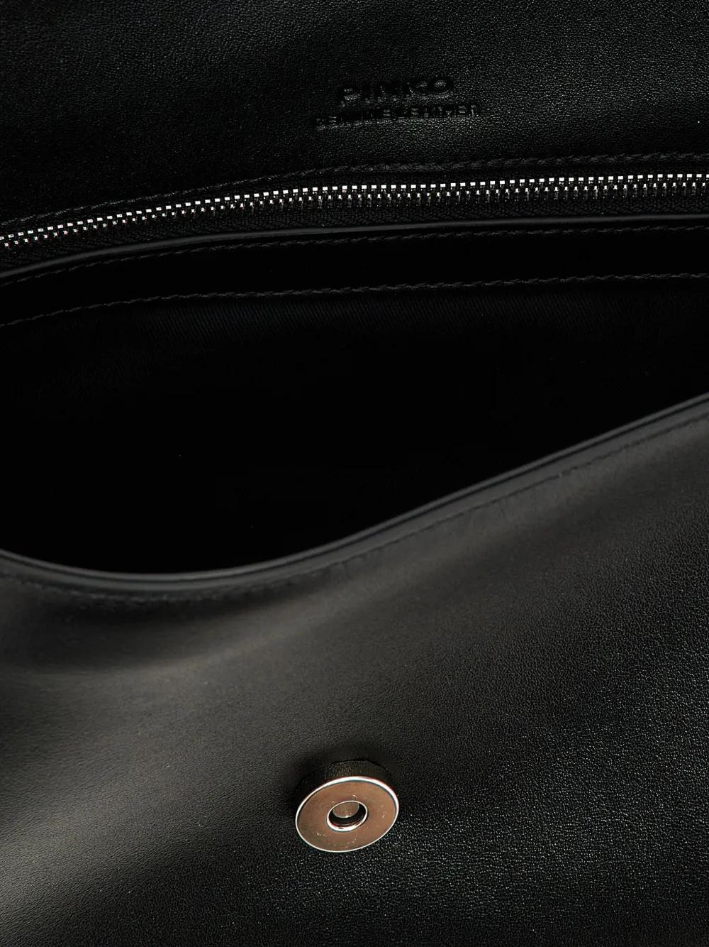 black foldover top with magnetic fastening leather and chain-link shoulder strap internal zip-fastening pocket
