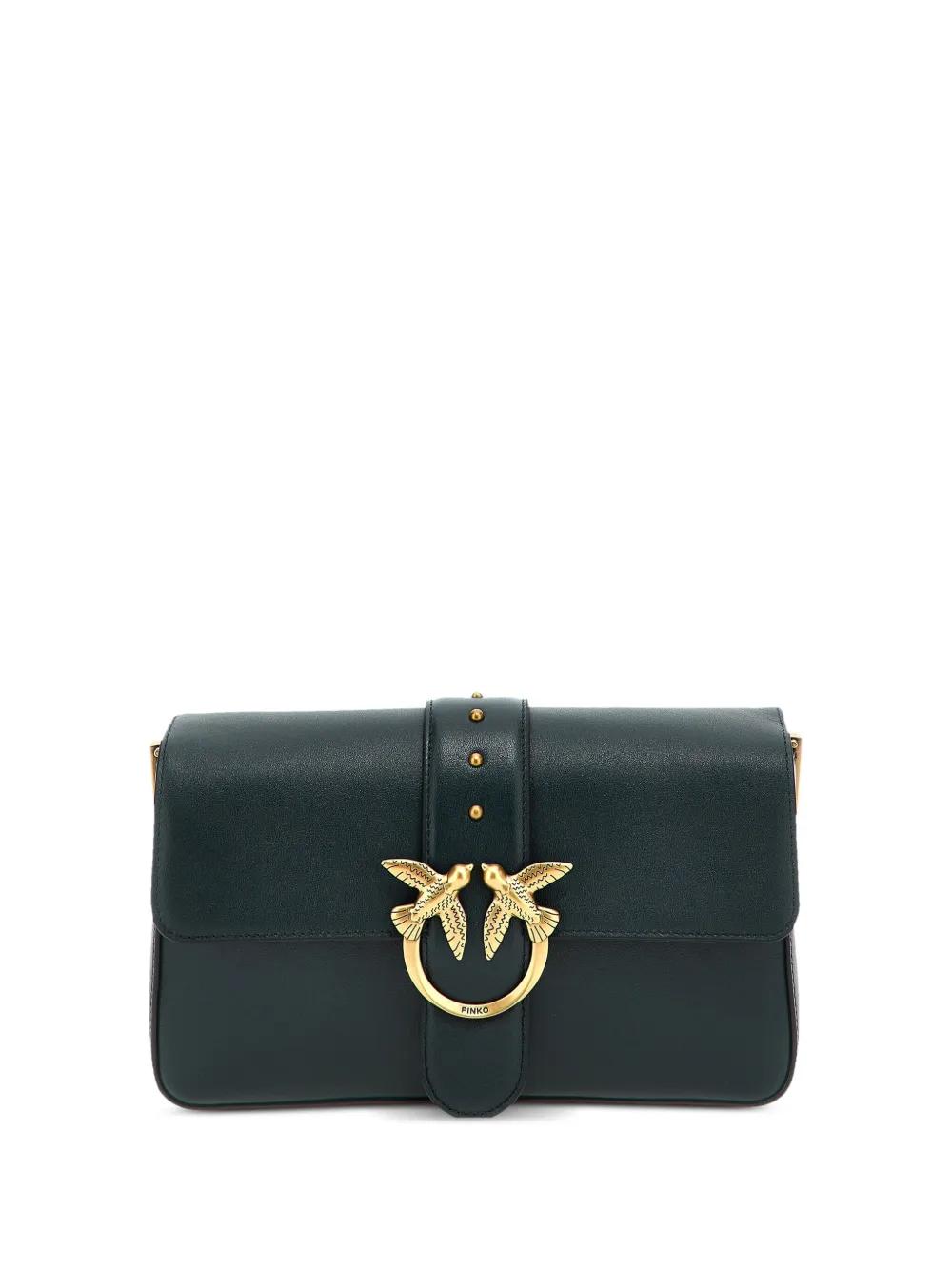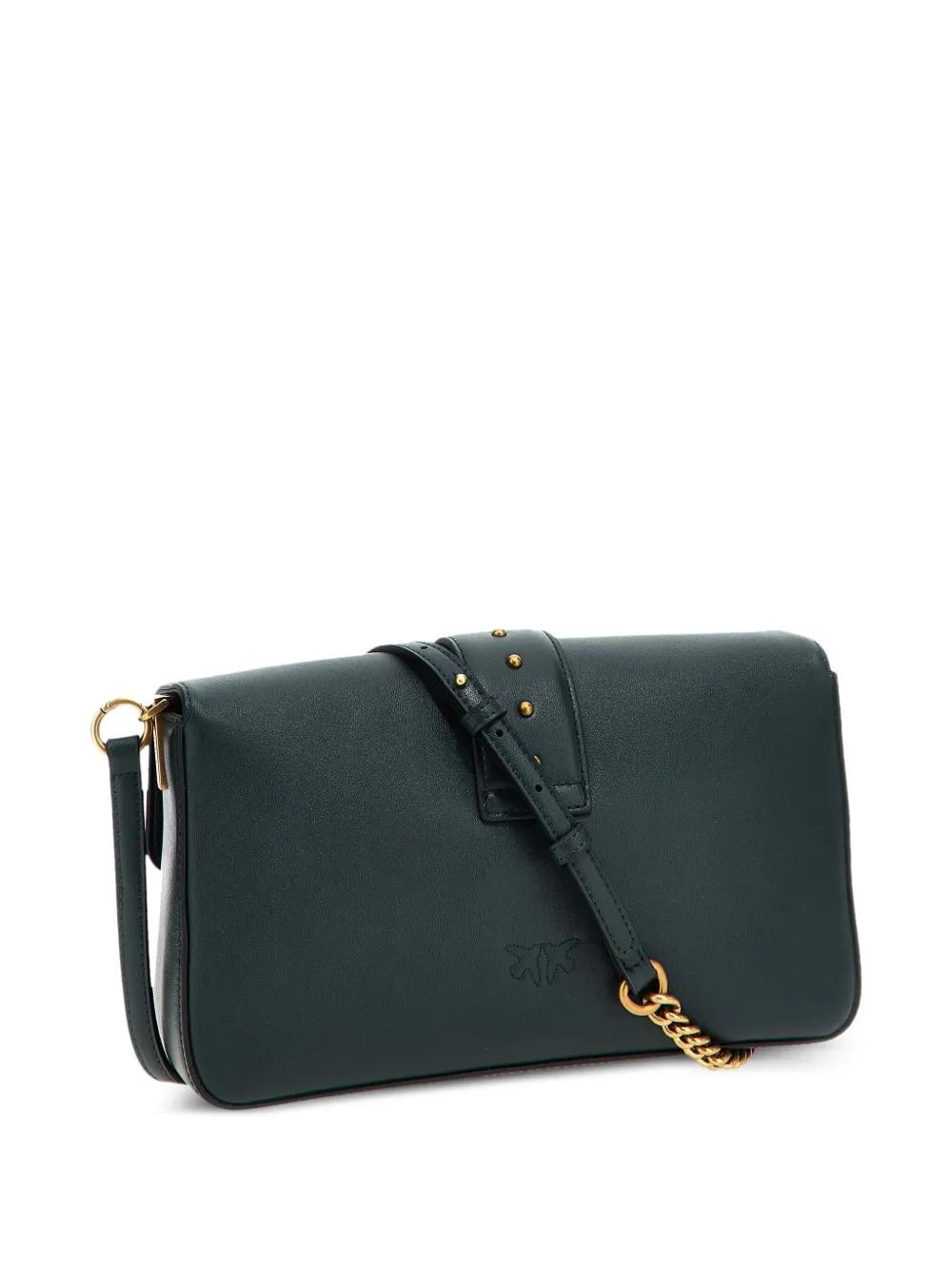 dark green foldover top with magnetic fastening leather and chain-link shoulder strap internal zip-fastening pocket