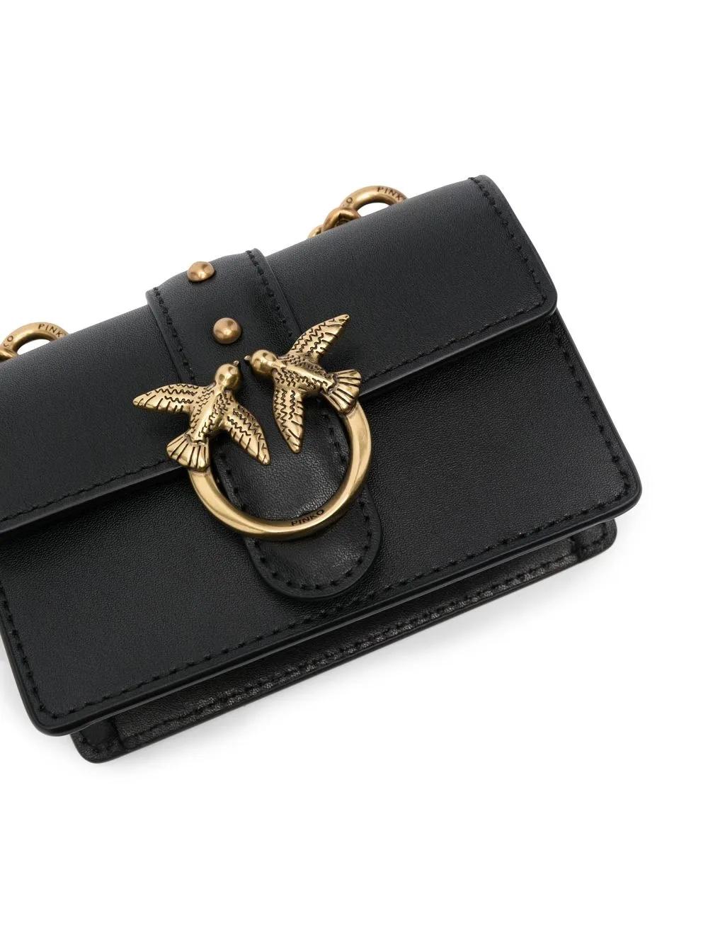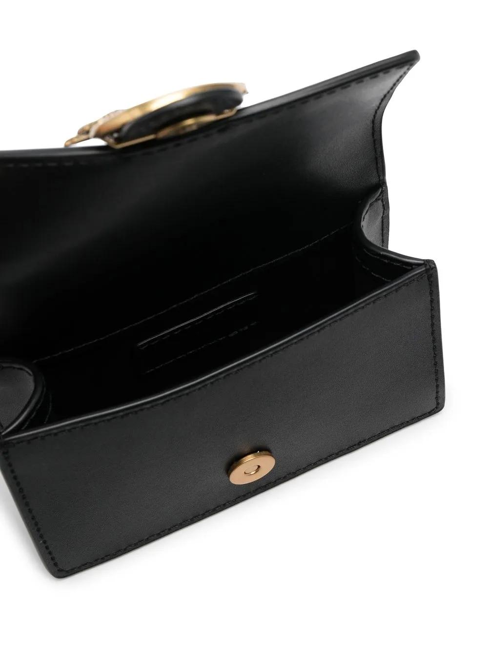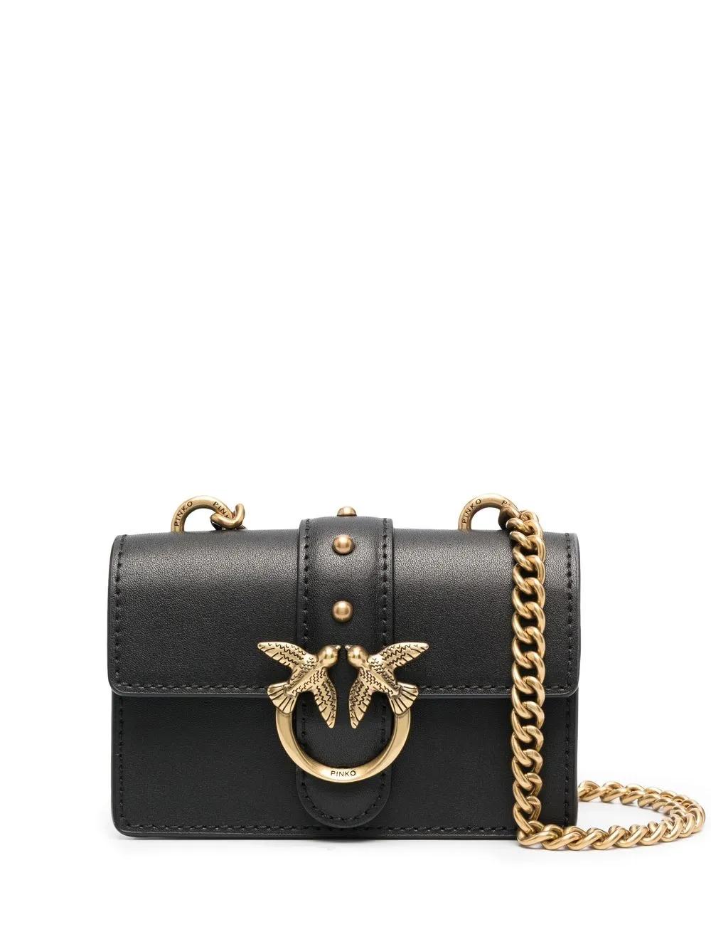 jet black calf leather gold-tone hardware gold-tone logo plaque embossed logo to the rear detachable chain-link shoulder strap foldover top with magnetic fastening main compartment internal slip pocket