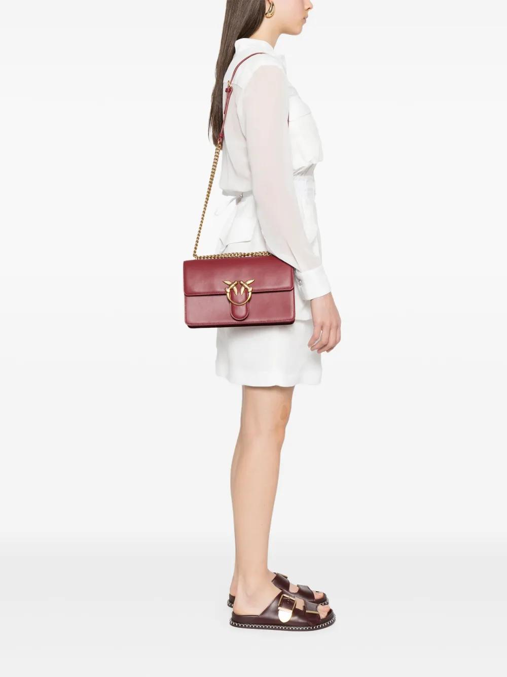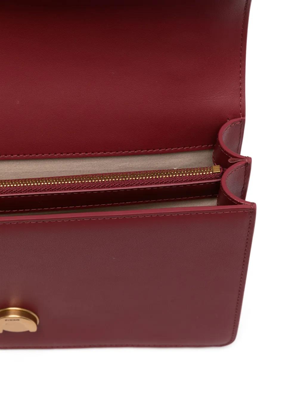 bordeaux red foldover top with magnetic fastening chain-link shoulder strap partitioned compartment zip-fastening compartment
