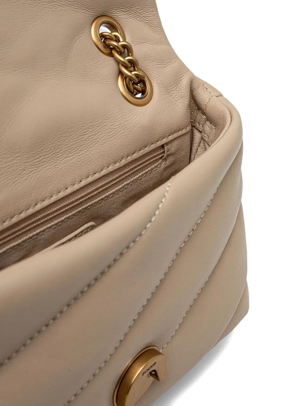 sand beige signature Love Birds buckle sliding chain-link shoulder strap internal zip-fastening pocket This piece comes complete with a protective dust bag.