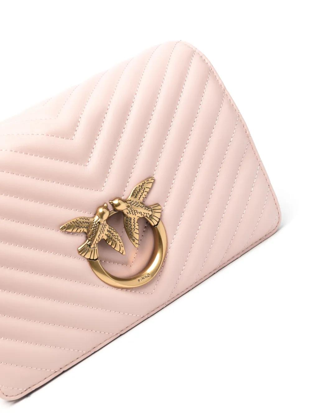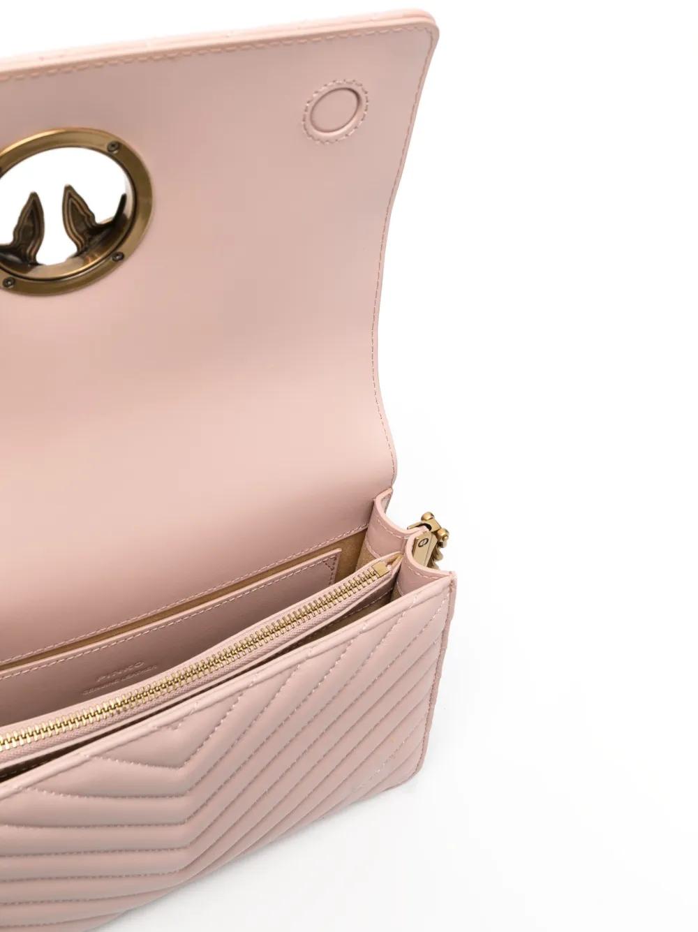 blush pink calf leather quilted gold-tone logo plaque foldover top with magnetic fastening partitioned compartment internal zip-fastening pocket adjustable leather and chain-link shoulder strap