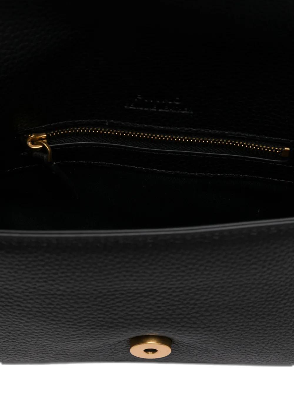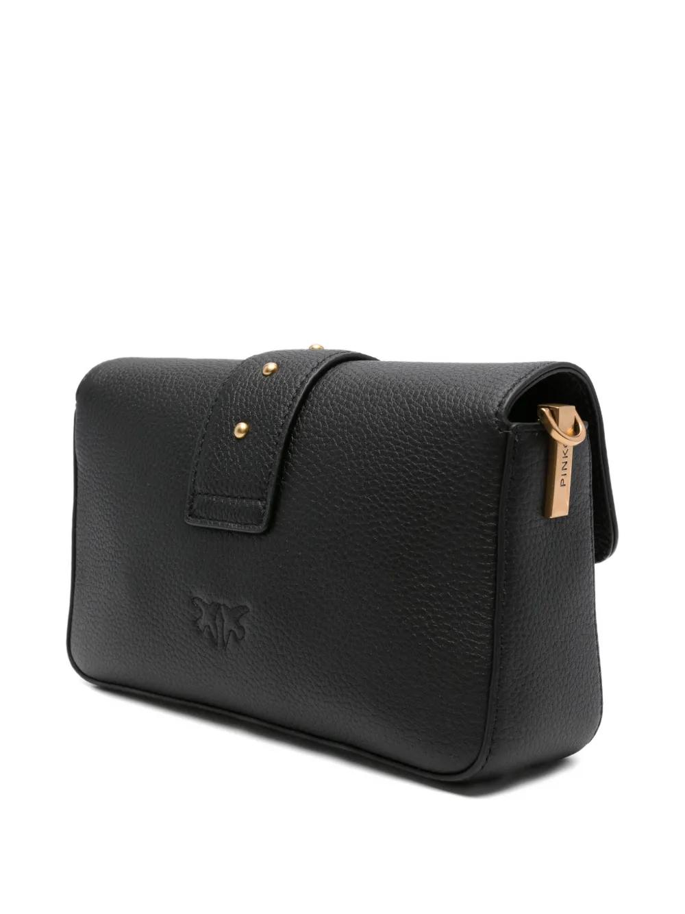 black calf leather magnetic closure adjustable shoulder strap stud detailing Love Birds clasp