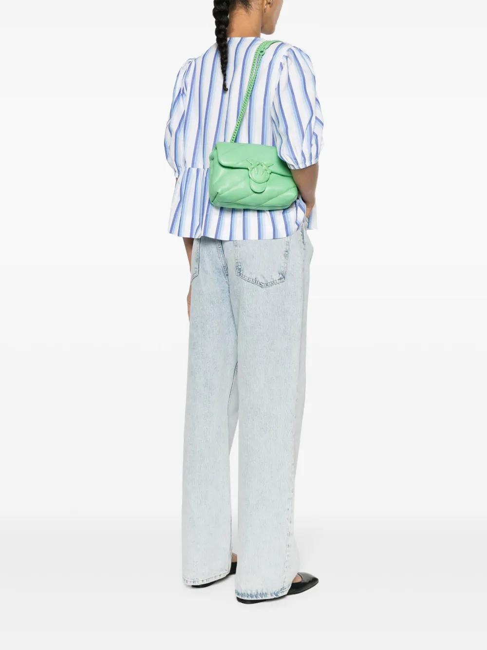 parakeet green calf leather smooth grain quilted signature Love Birds buckle eyelet detailing logo-engraved antique-effect hardware embroidered logo to the rear foldover top with clasp fastening two chain-link shoulder straps main compartment debossed internal logo internal slip pocket internal zip-fastening pocket antique-effect hardware full lining This piece comes complete with a protective dust bag.