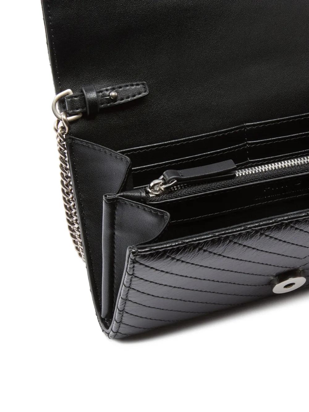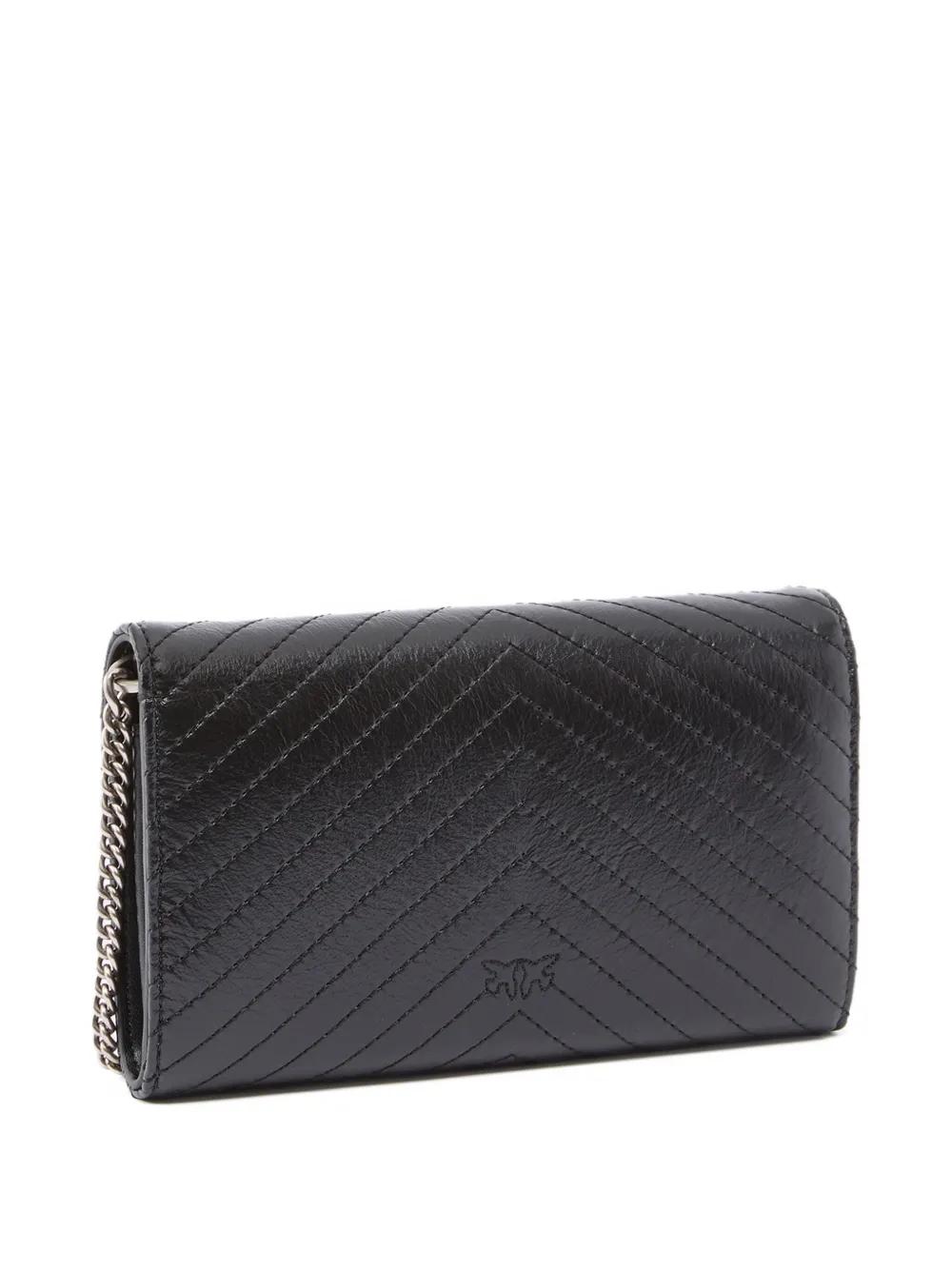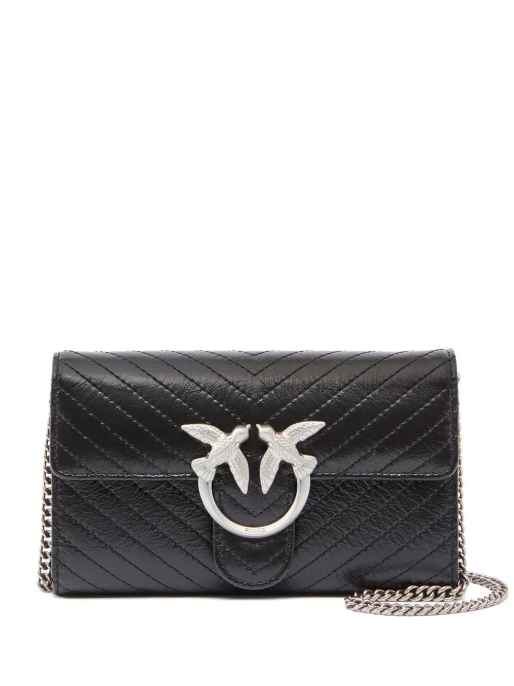 black chevron quilting chain strap leather flap closure signature Love Birds buckle