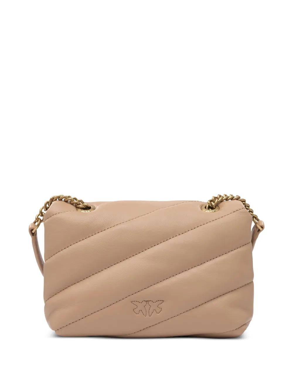 light brown quilted leather chain strap flap top gold-tone logo hardware