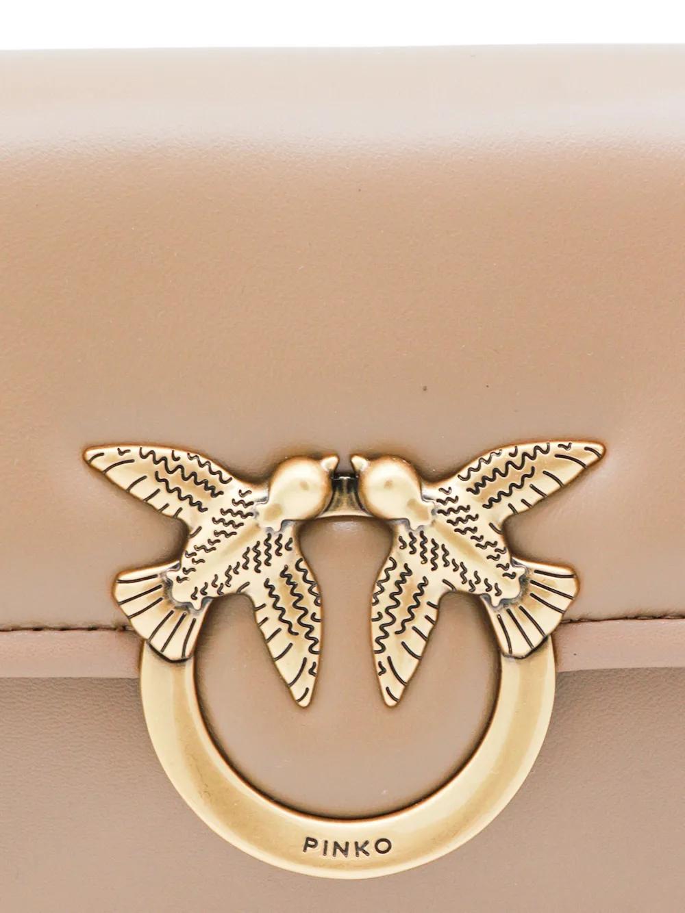 beige leather Love Birds detail adjustable shoulder strap gold-tone hardware rectangular shape