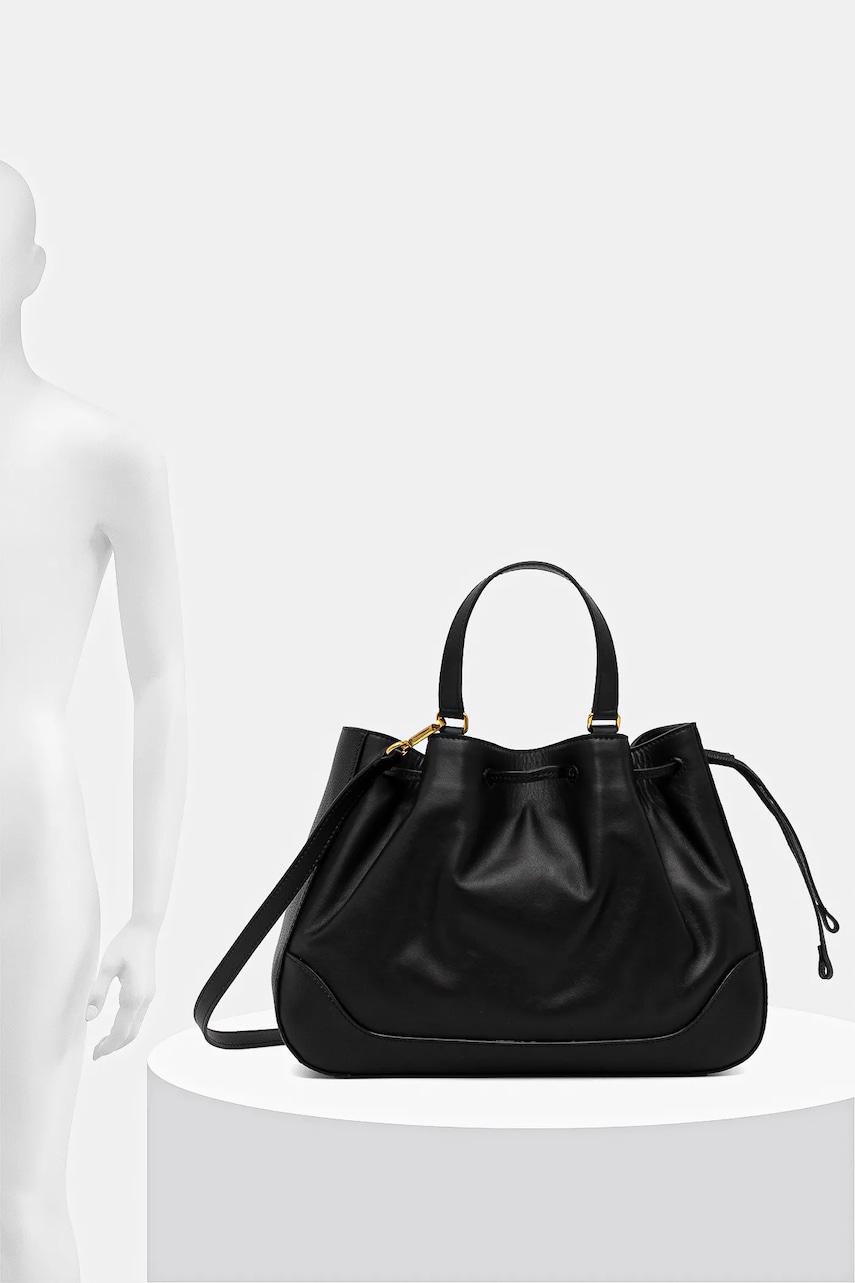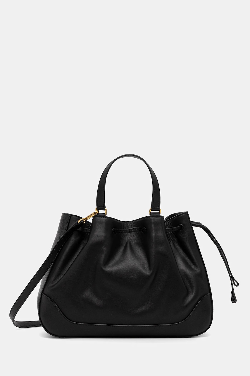 - Mieści format A4. - Dołączony tekstylny worek zabezpiecza produkt przed kurzem. - Komora ściągana troczkami. - Model z podszewką. - Posiada uchwyty i odpinany pasek bez regulacji. - Długość uchwytów: 28 cm. - Długość paska: 107 cm. - Głębokość: 13 cm. - Wysokość: 24 cm. - Szerokość u podstawy: 32 cm.