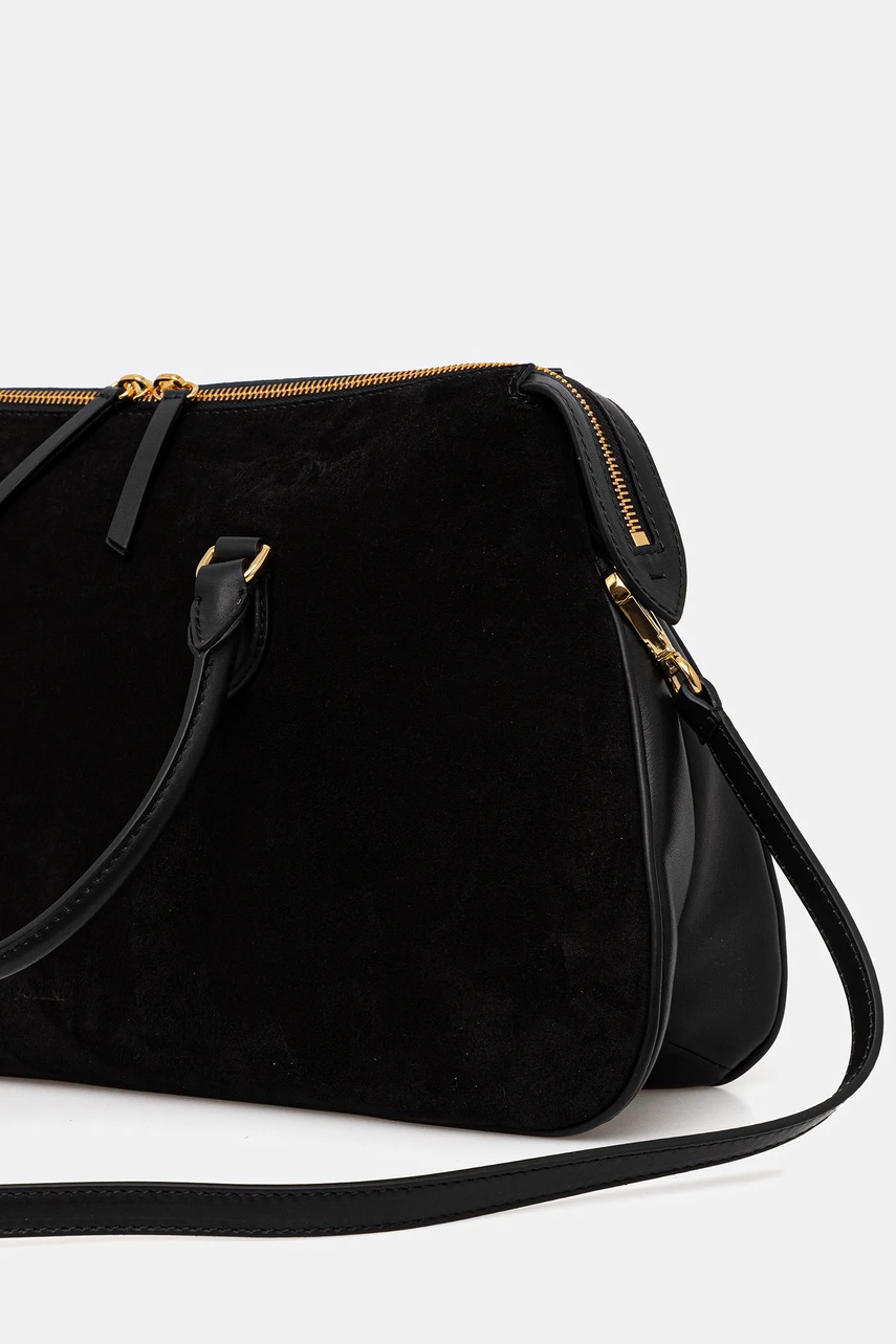 - Komora zapinana na suwak. - Posiada uchwyty i odpinany pasek bez regulacji. - Zapinana na suwak kieszonka wewnętrzna, która ułatwia bezpieczne przechowywanie telefonu lub innych drobiazgów. - Nie mieści formatu A4. - Model z podszewką. - Długość uchwytów: 38 cm. - Długość paska: 105 cm. - Głębokość: 10 cm. - Wysokość: 25 cm. - Szerokość u podstawy: 42 cm.