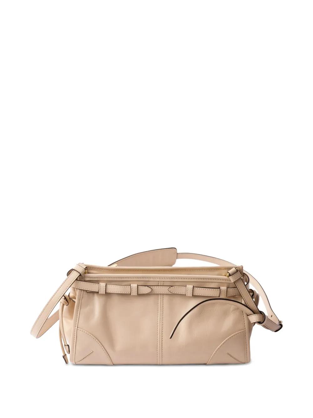 beige top zip fastening adjustable shoulder strap gold-tone hardware external logo plaque side detailing main compartment inner slip pocket