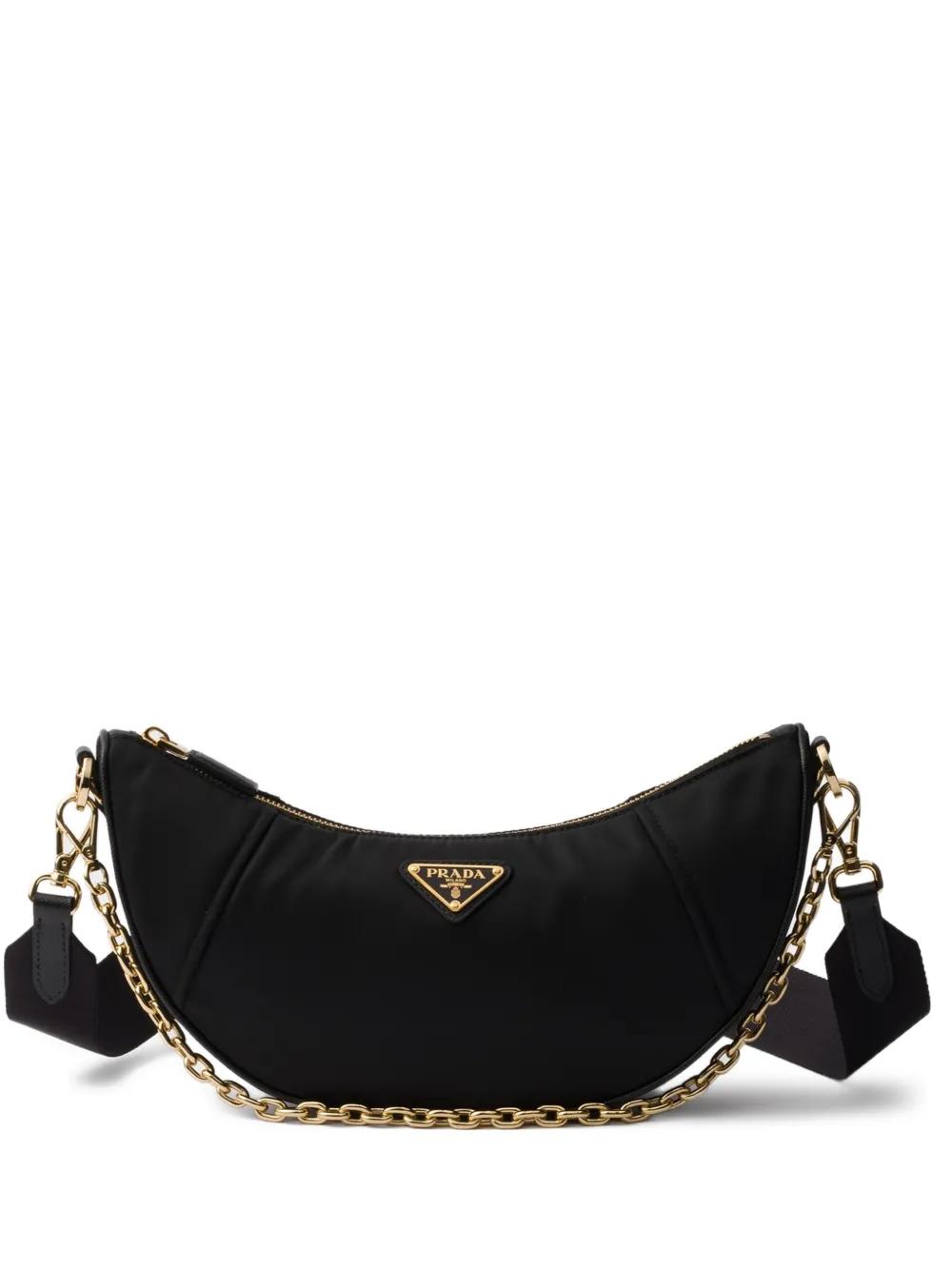 black enamel triangle logo detachable chain-link shoulder strap adjustable detachable shoulder strap top zip fastening