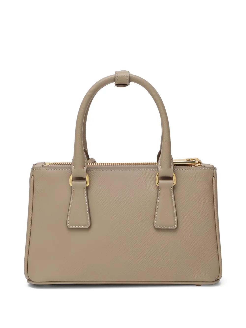 beige top handles gold-tone hardware triangular logo plaque zip fastening detachable tag main compartment