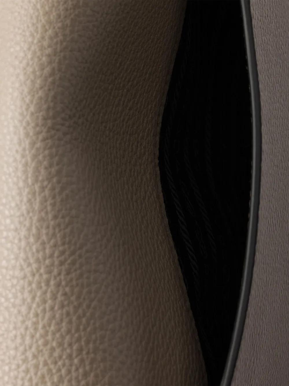 taupe grey foldover top with magnetic fastening adjustable detachable shoulder strap slip pocket to the rear This piece comes complete with a protective dust bag.