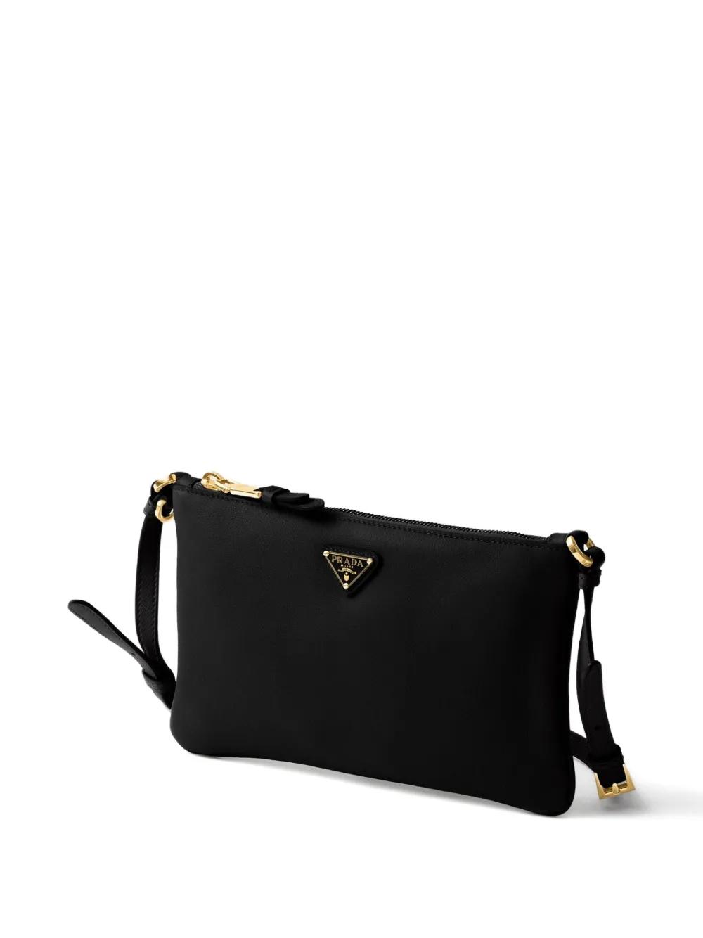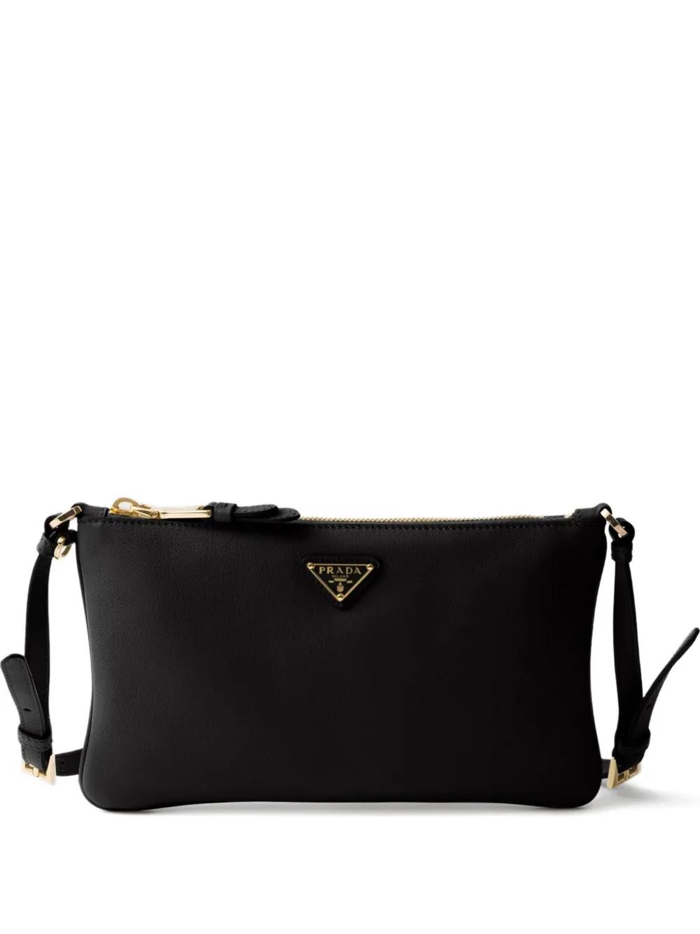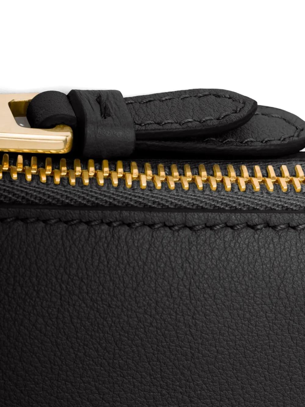 black logo plaque adjustable handle zip closure gold-tone hardware