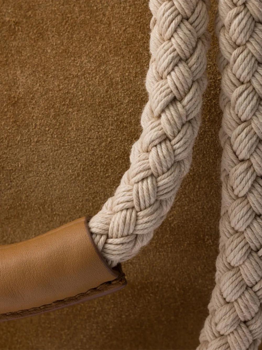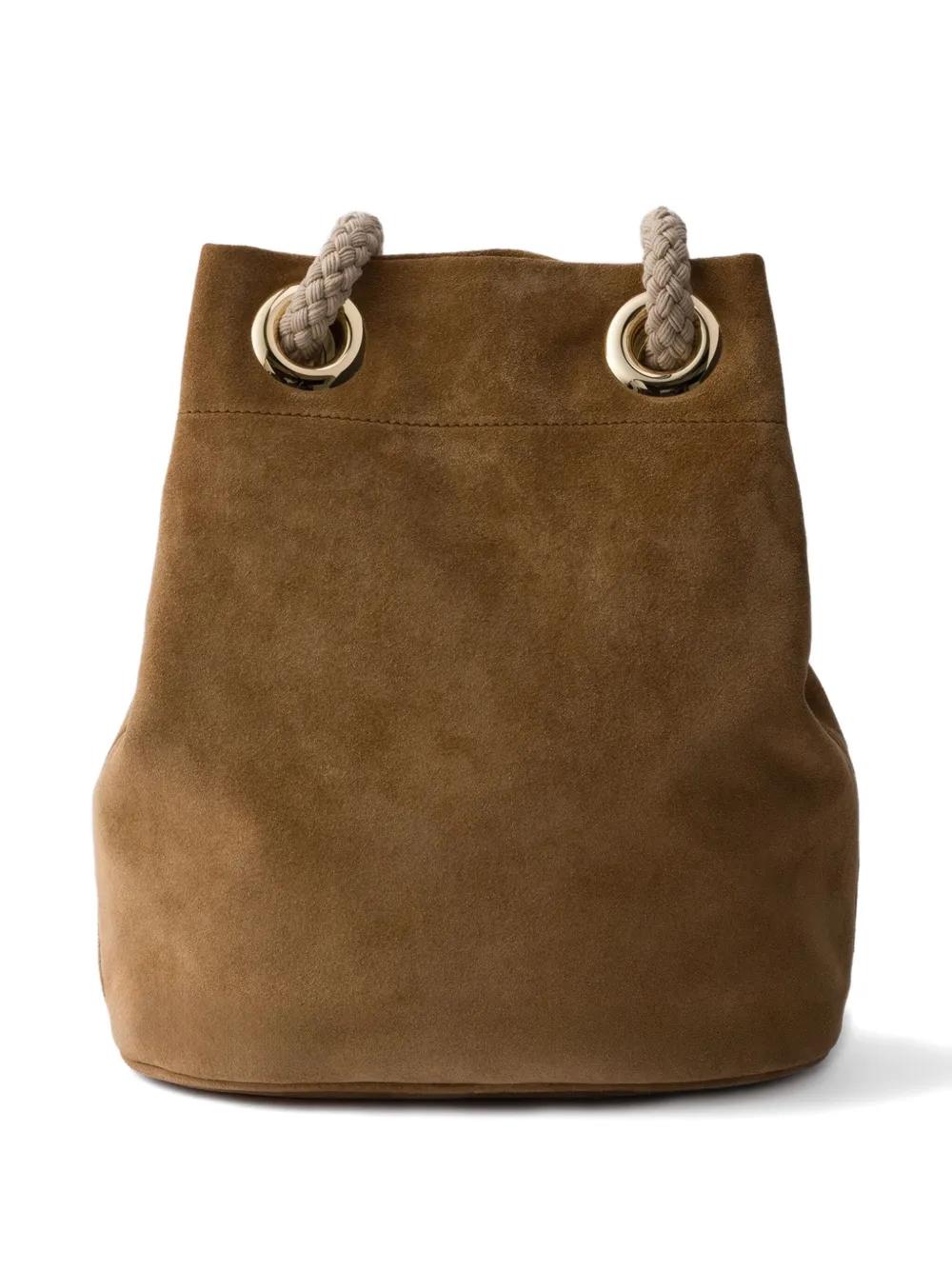 brown suede logo plaque braided handles drawstring fastening