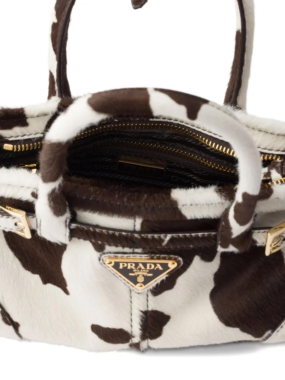white/brown animal print gold-tone hardware logo plaque drawstring fastening