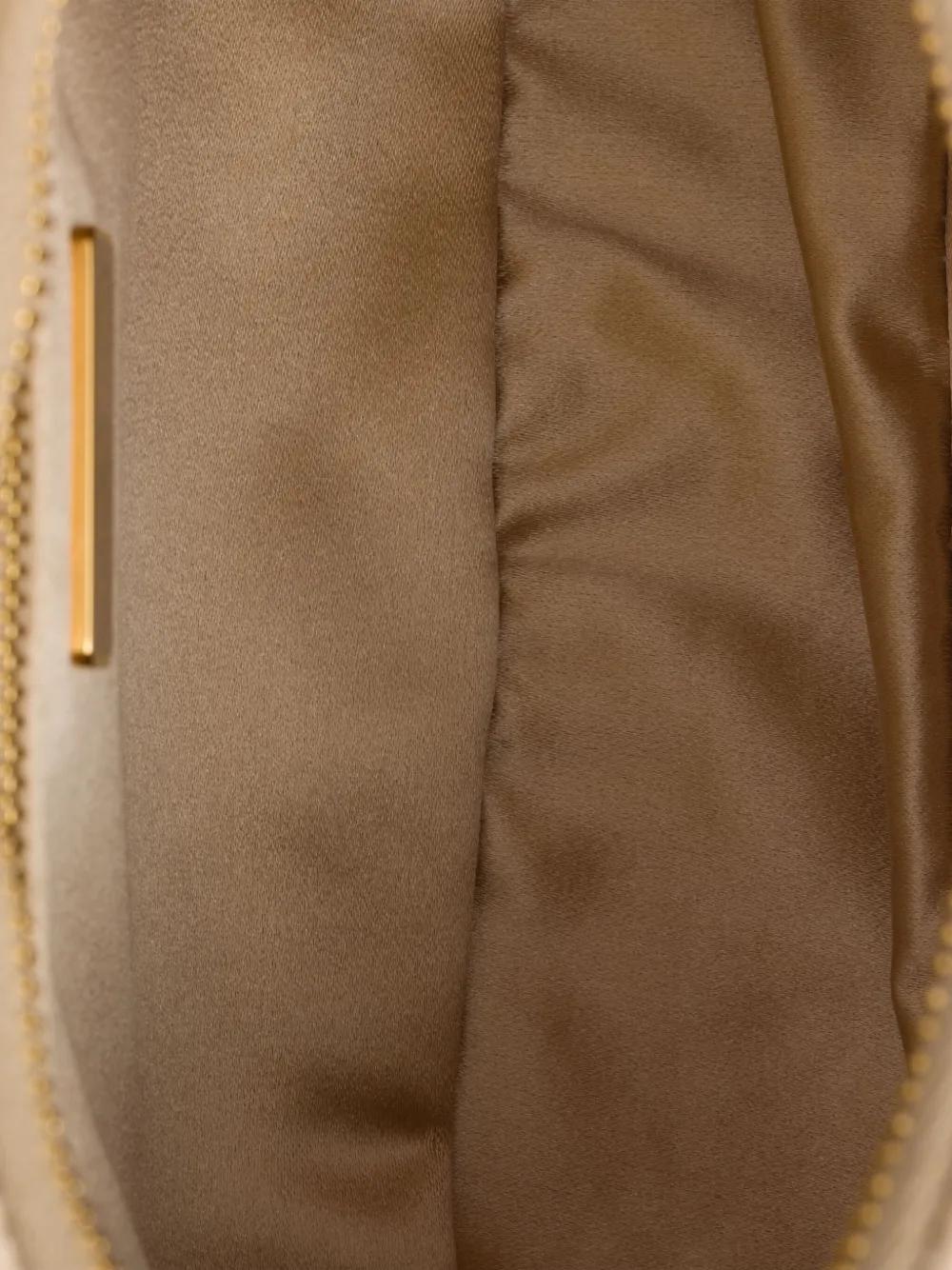 sand crystal embellishment top handle zip closure gold-tone hardware enameled triangle logo
