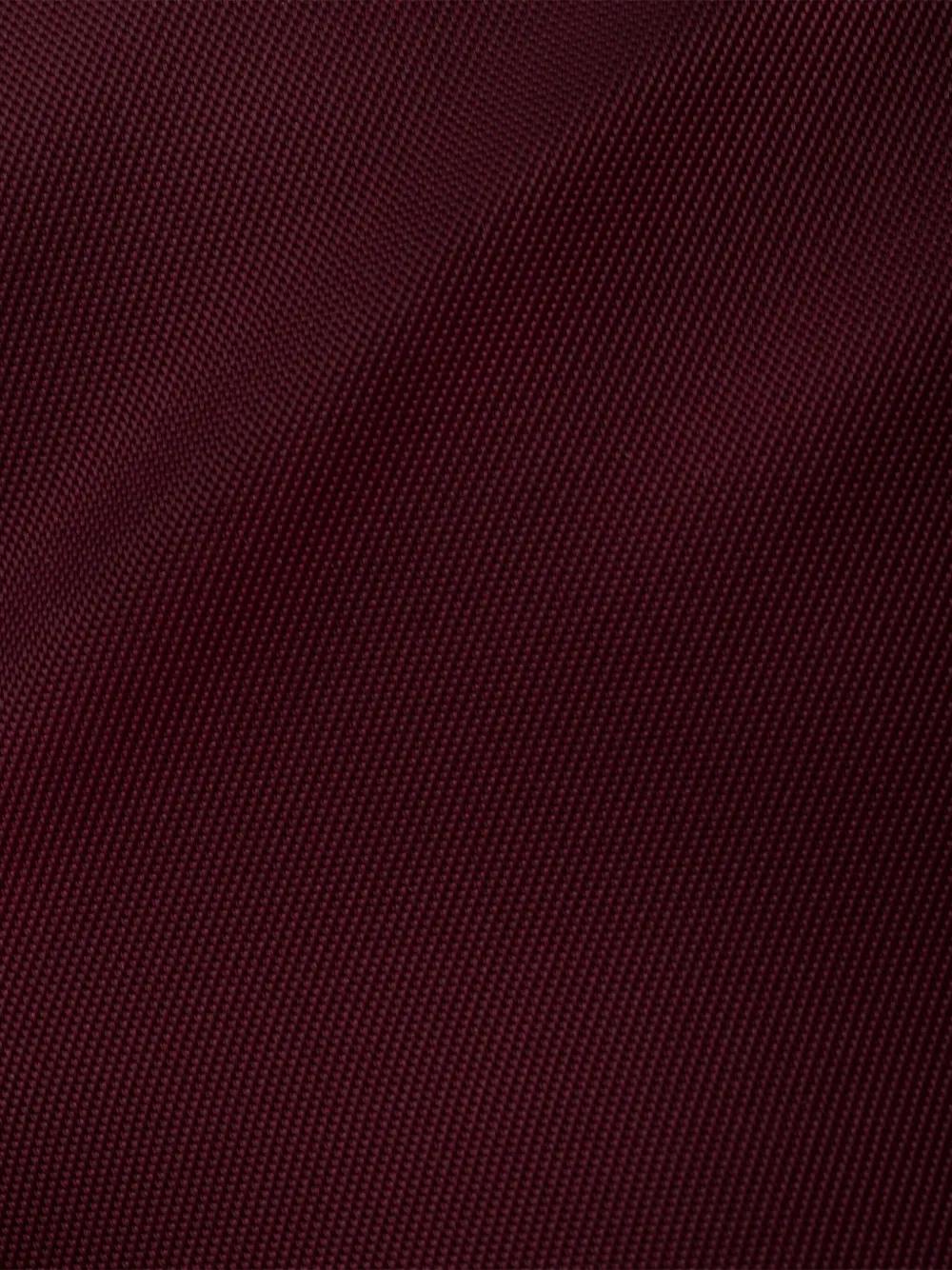 burgundy zip fastening adjustable leather handle enamelled metal triangle logo flat shape