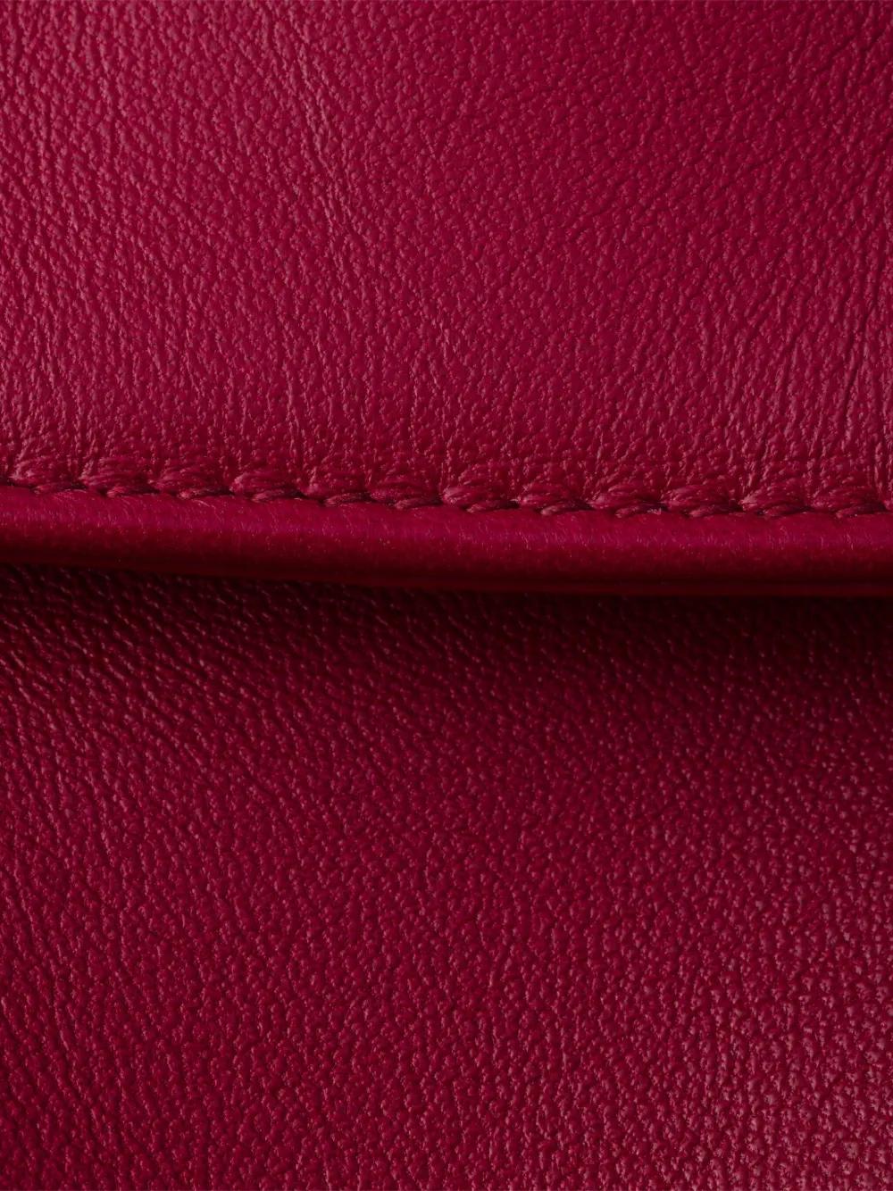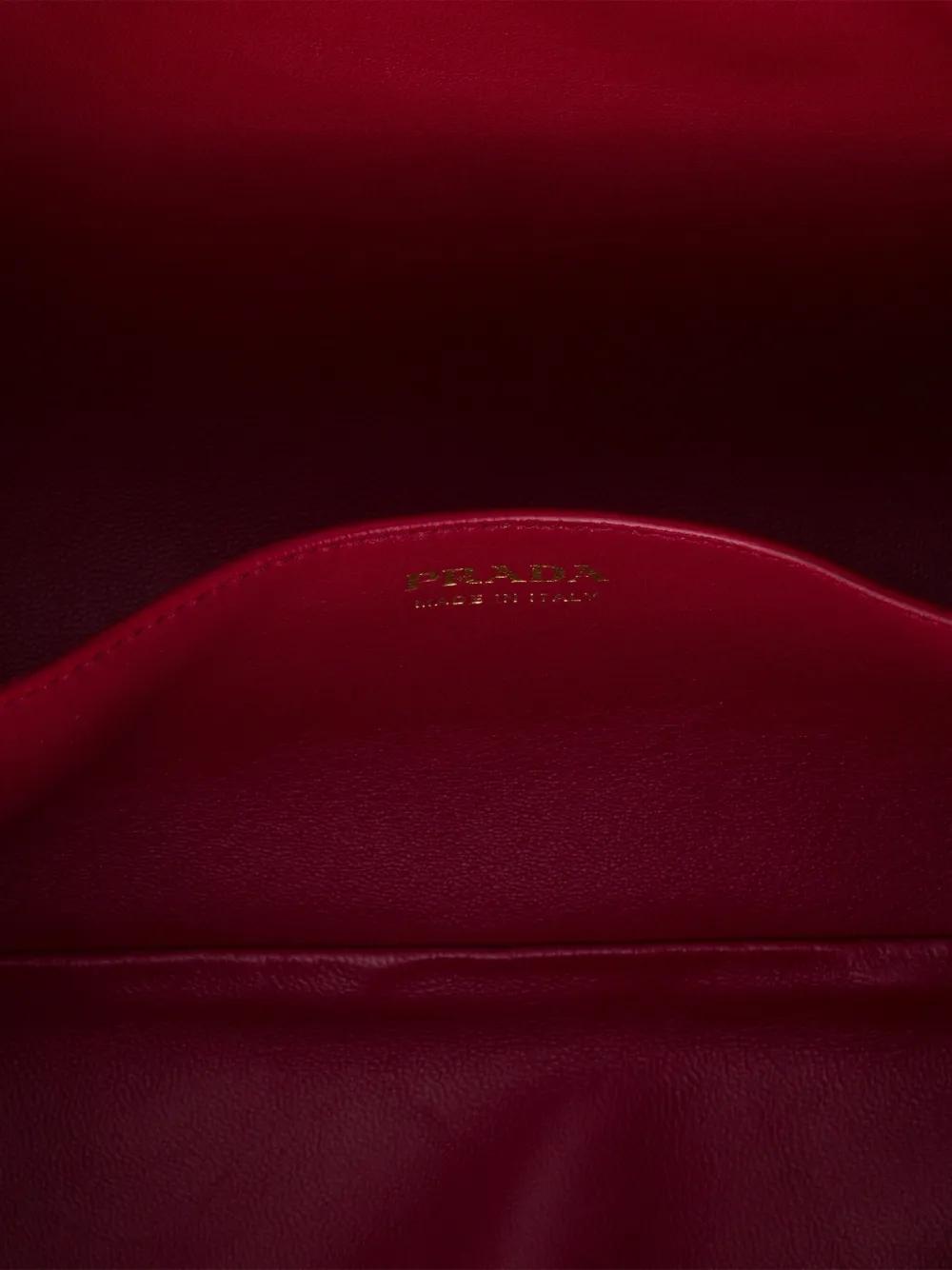red hot-stamped logo lettering flap closure chain straps gold-tone hardware