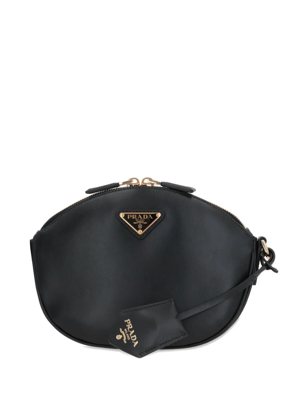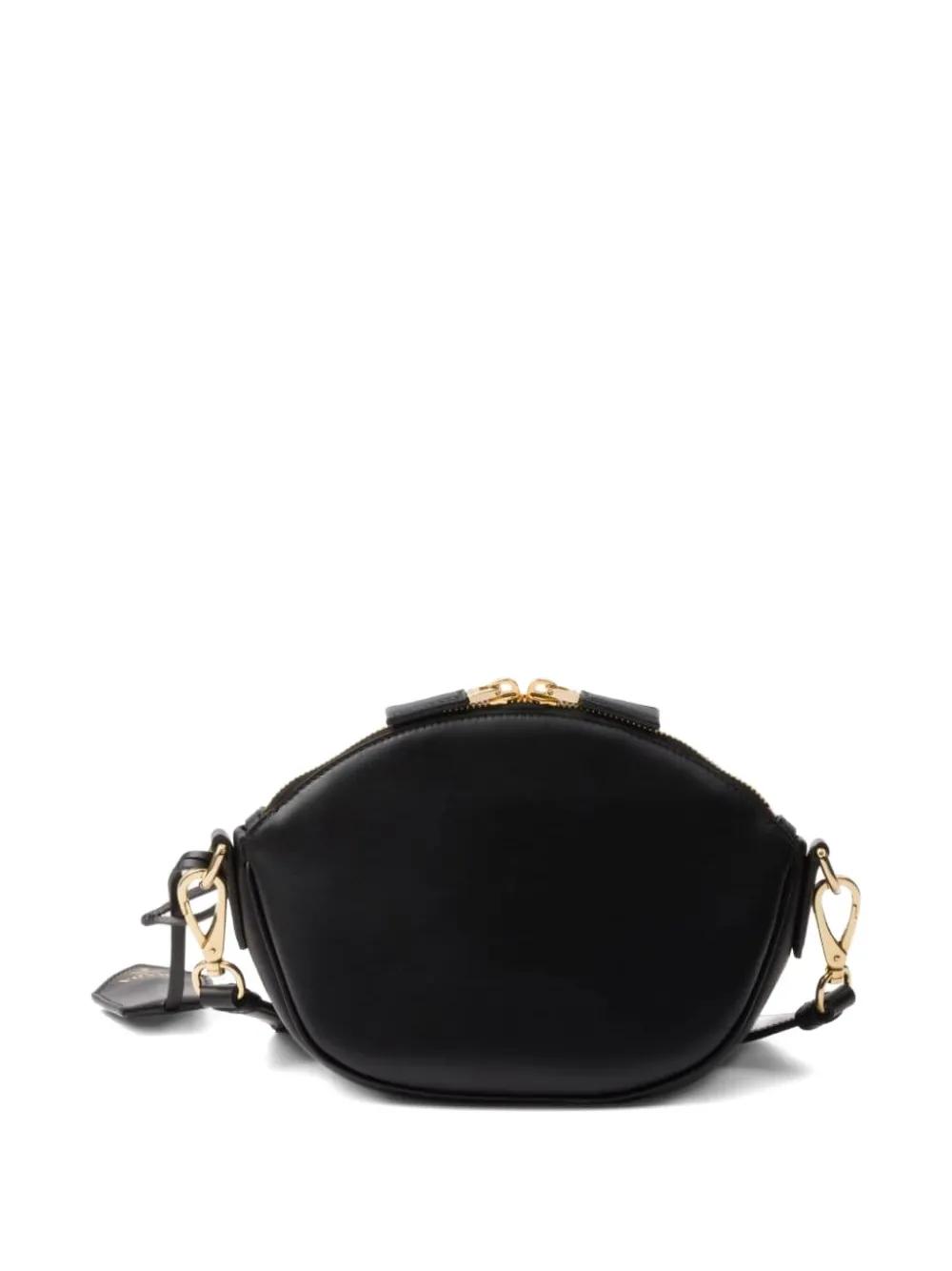 black double-slider zip adjustable shoulder strap gold-tone hardware logo detail hanging-tag detail