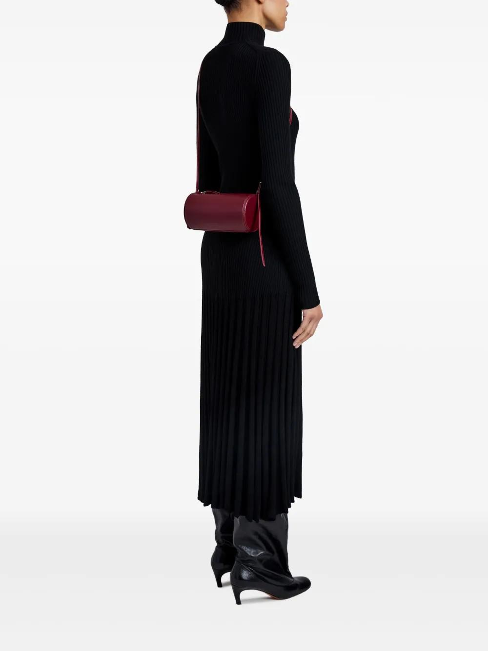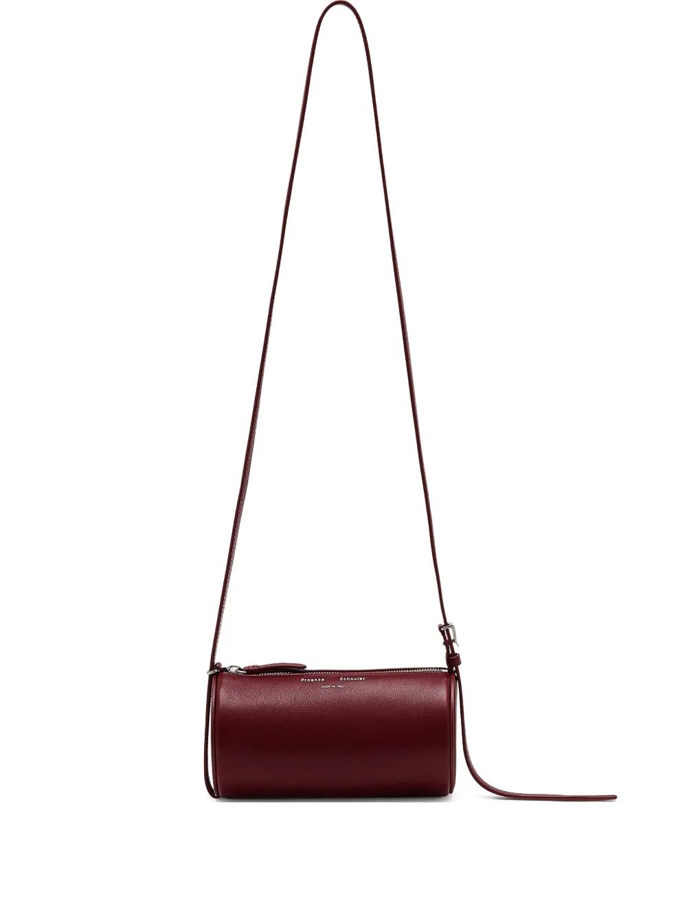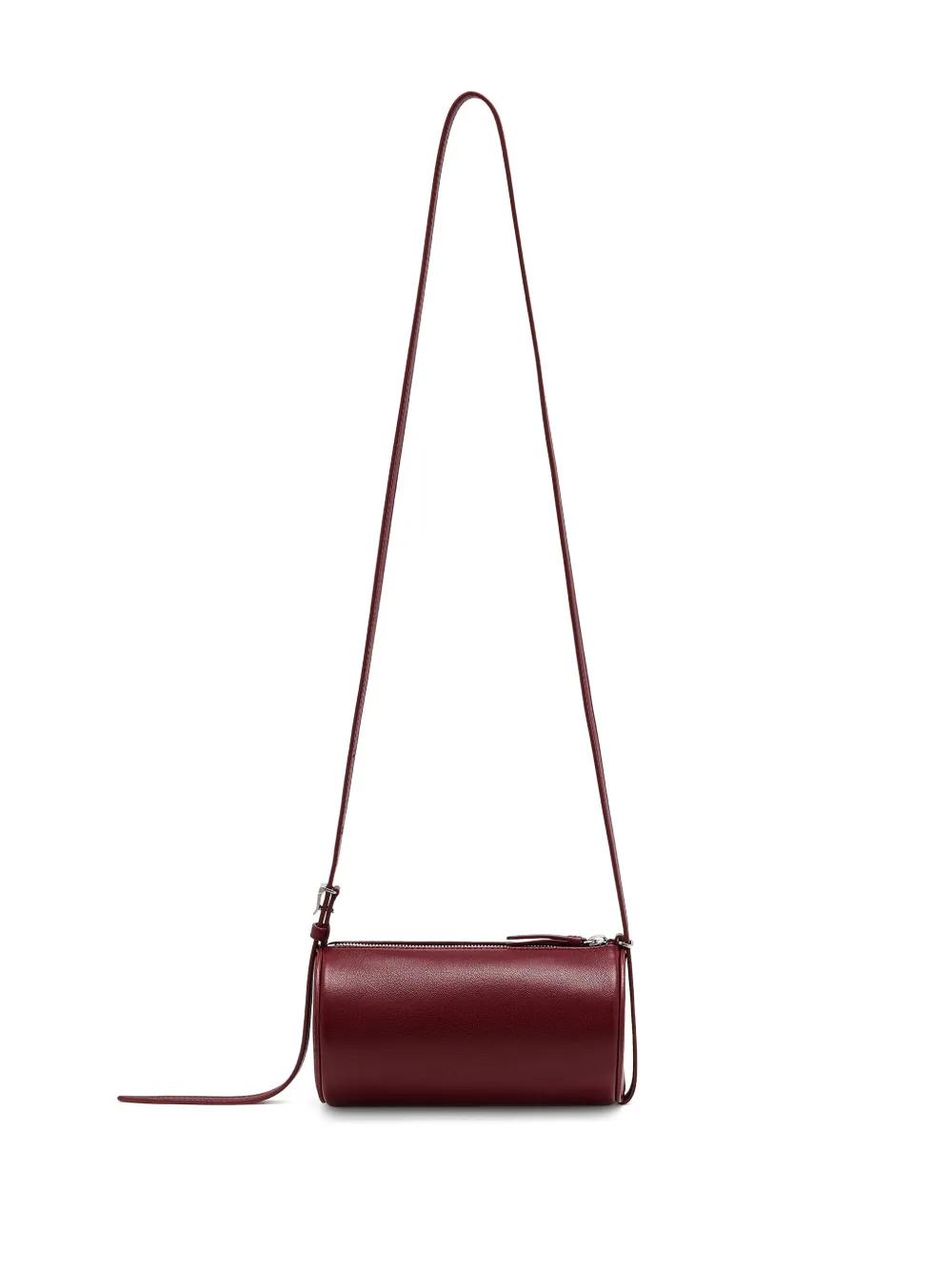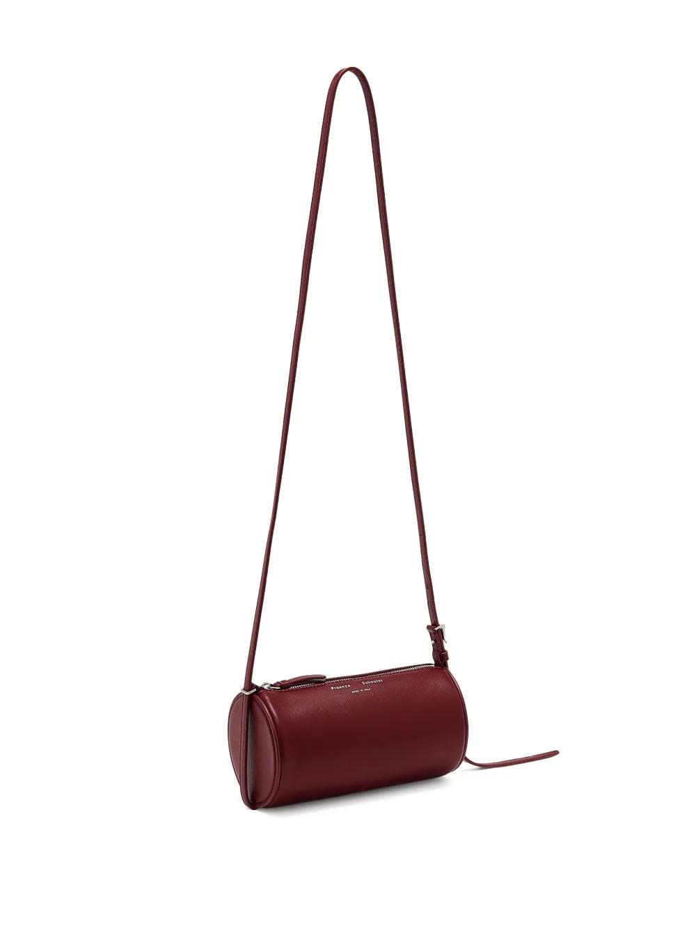dark red top zip fastening adjustable shoulder strap logo stamp to the front This piece comes complete with a protective dust bag.