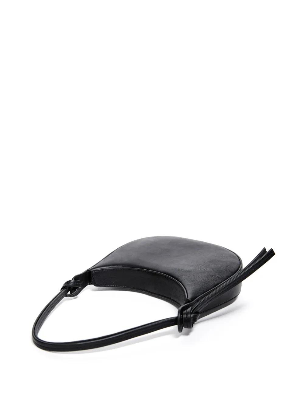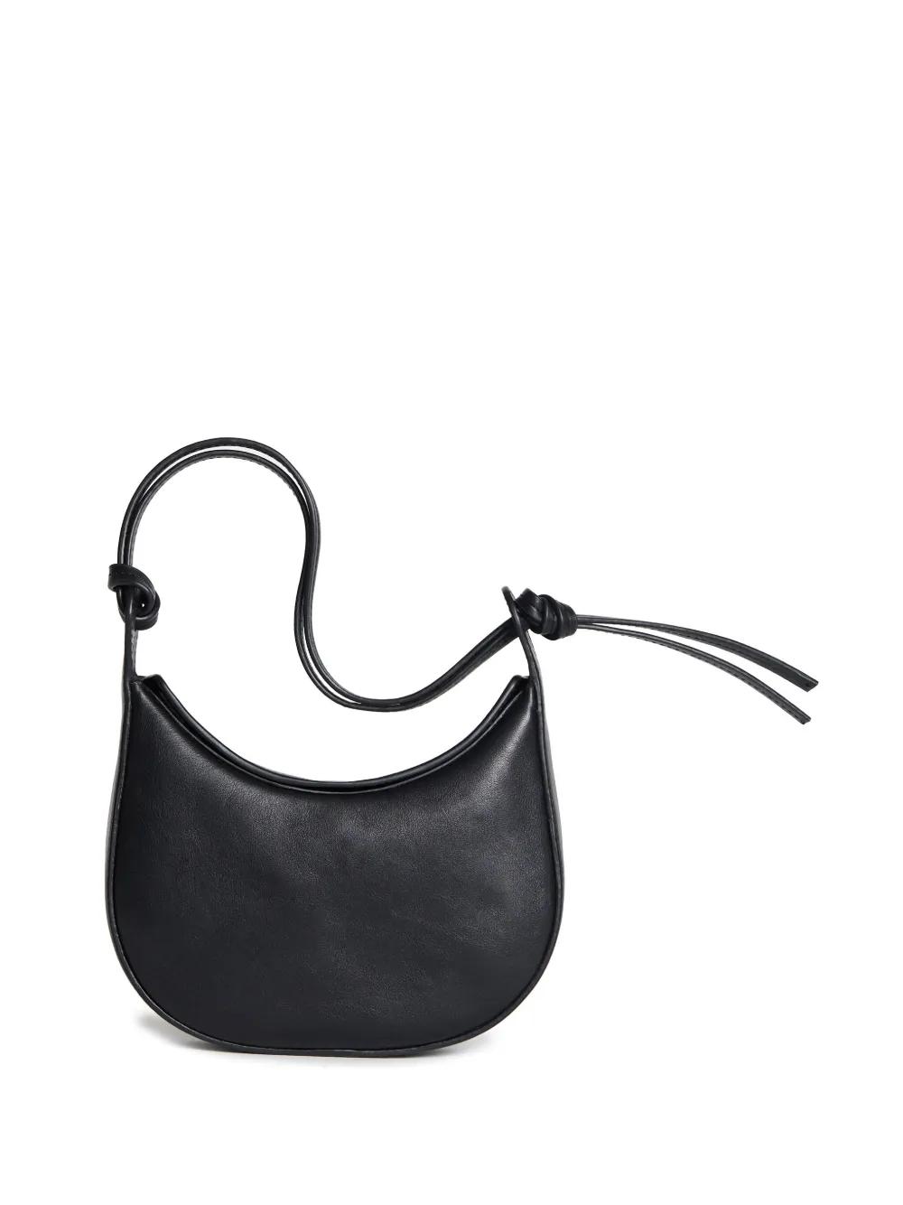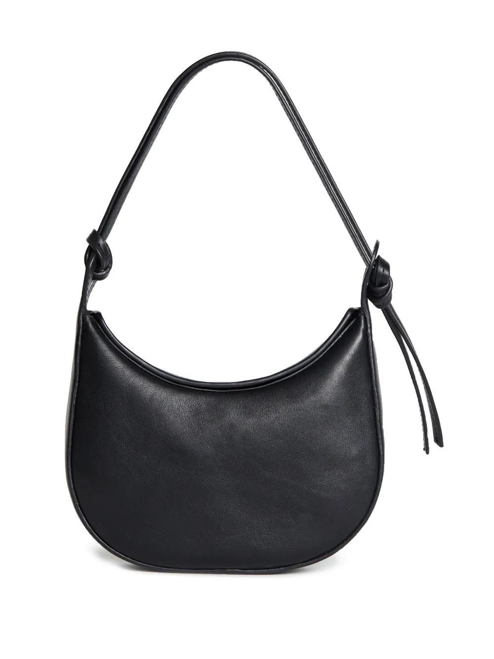 black leather smooth grain knot detailing concealed magnetic fastening single shoulder strap main compartment