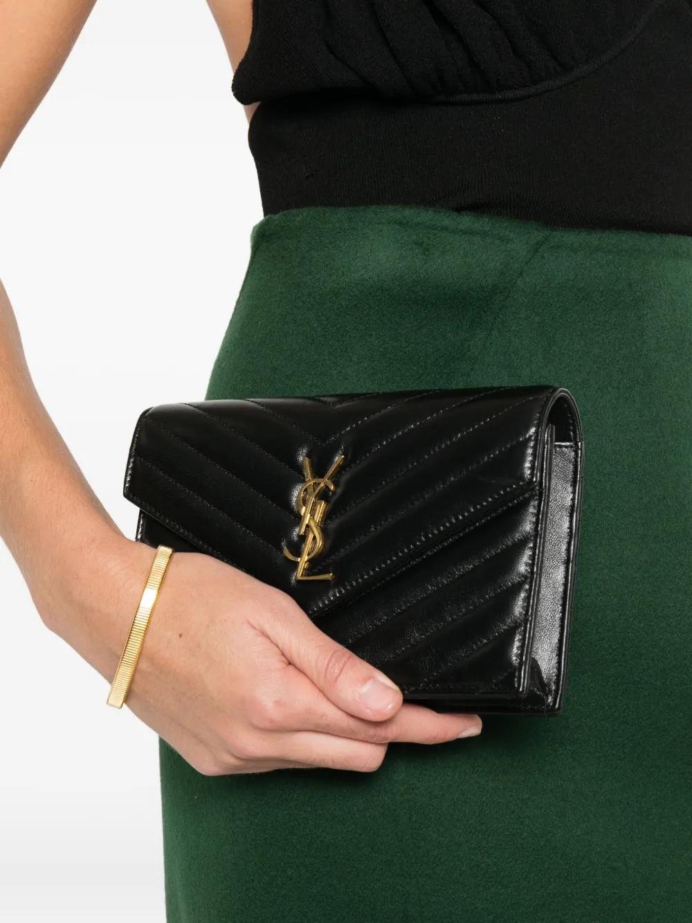 Saint Laurent Cassandre chevron chain mini bag - Black