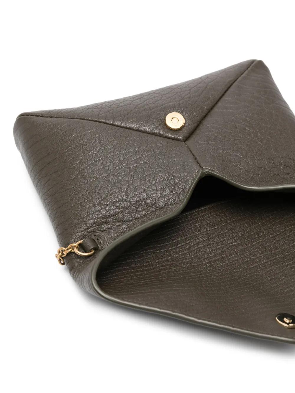 green lambskin leather envelope shape signature Cassandre logo plaque flap closure