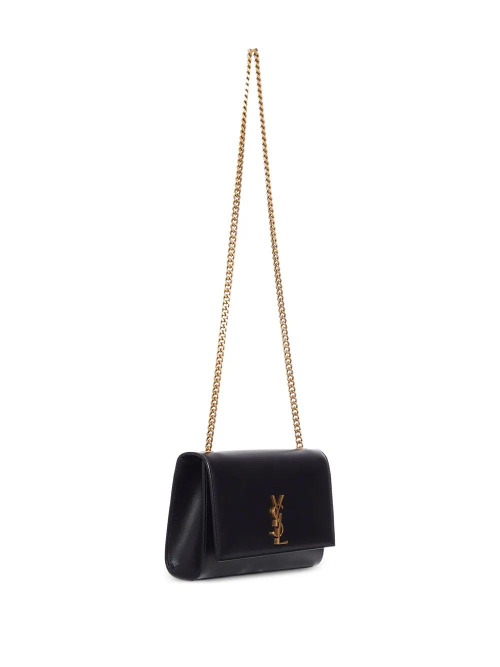 black gold-tone hardware magnetic press-stud fastening chain shoulder strap internal slip pocket logo plaque