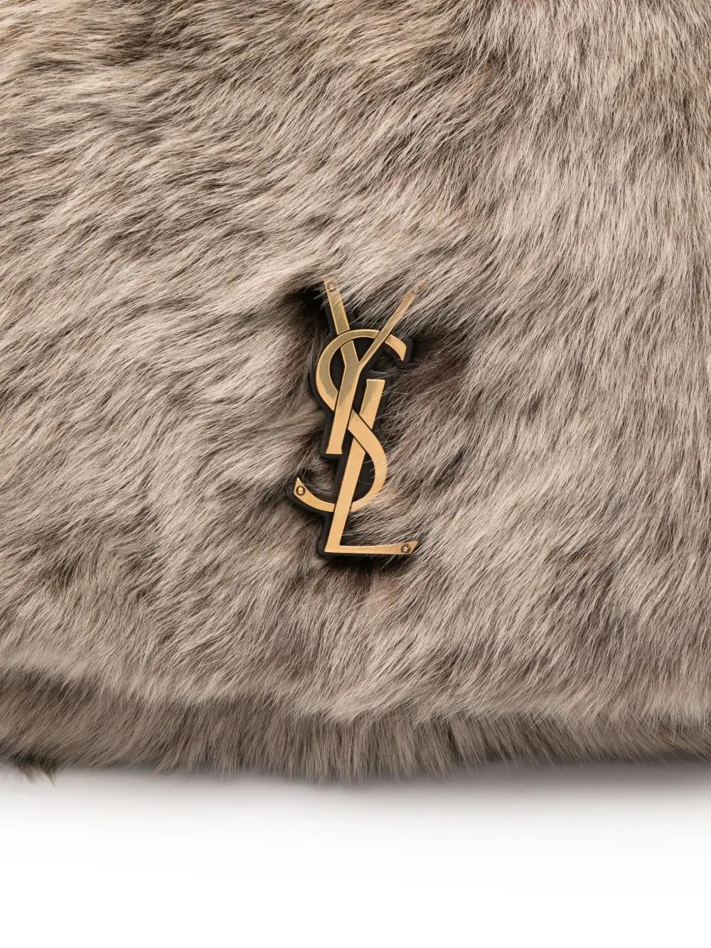 brown fur finish gold-tone logo plaque chain-link shoulder strap internal zip-fastening pocket