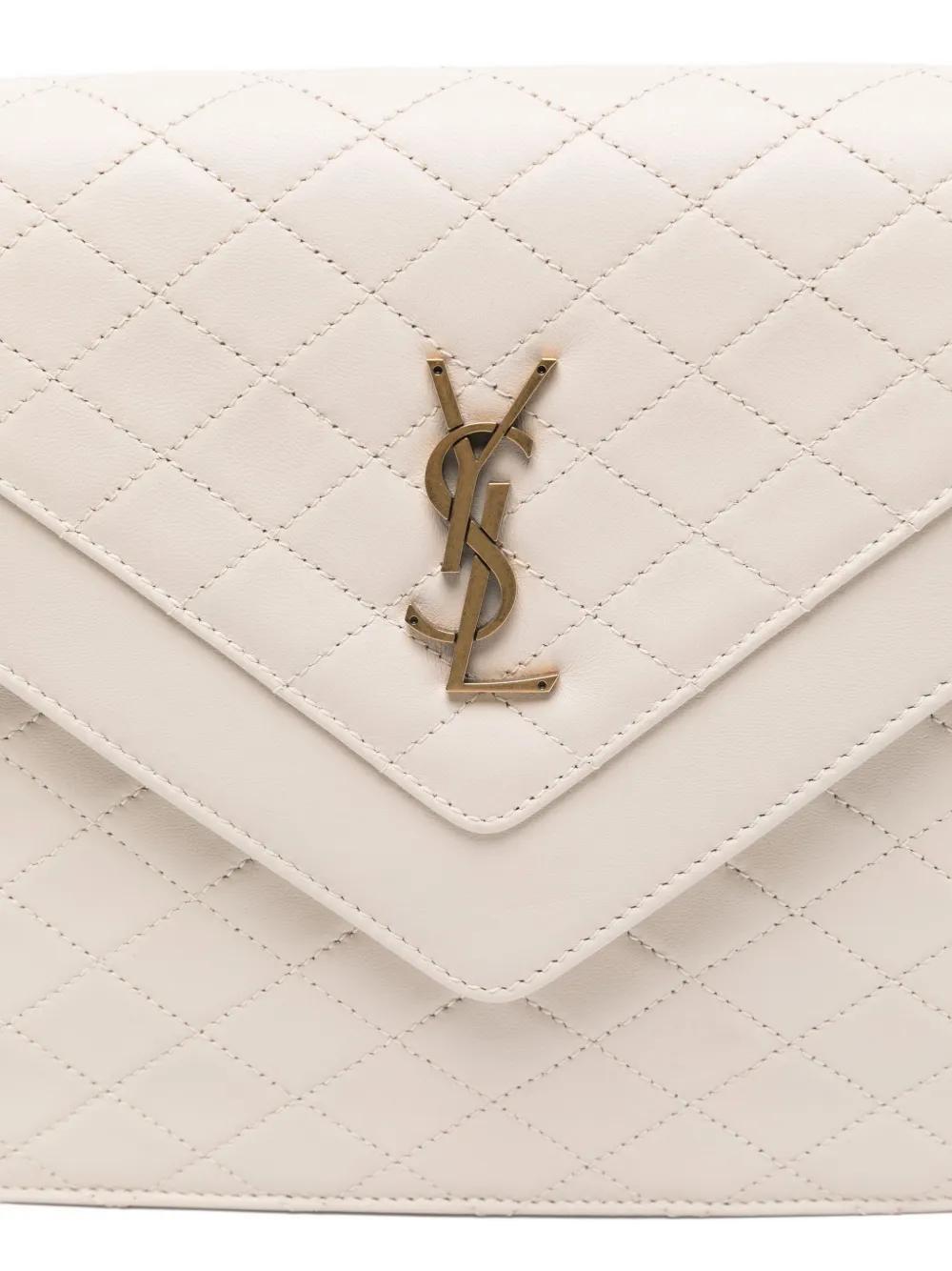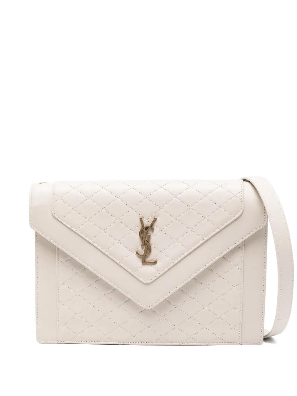 white quilted design envelope style single shoulder strap magnetic fastening internal zip-fastening pocket