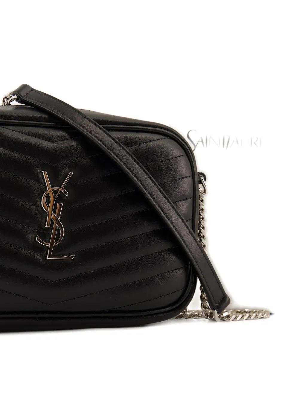 Saint Laurent mini Lou chevron logo shoulder bag - Black