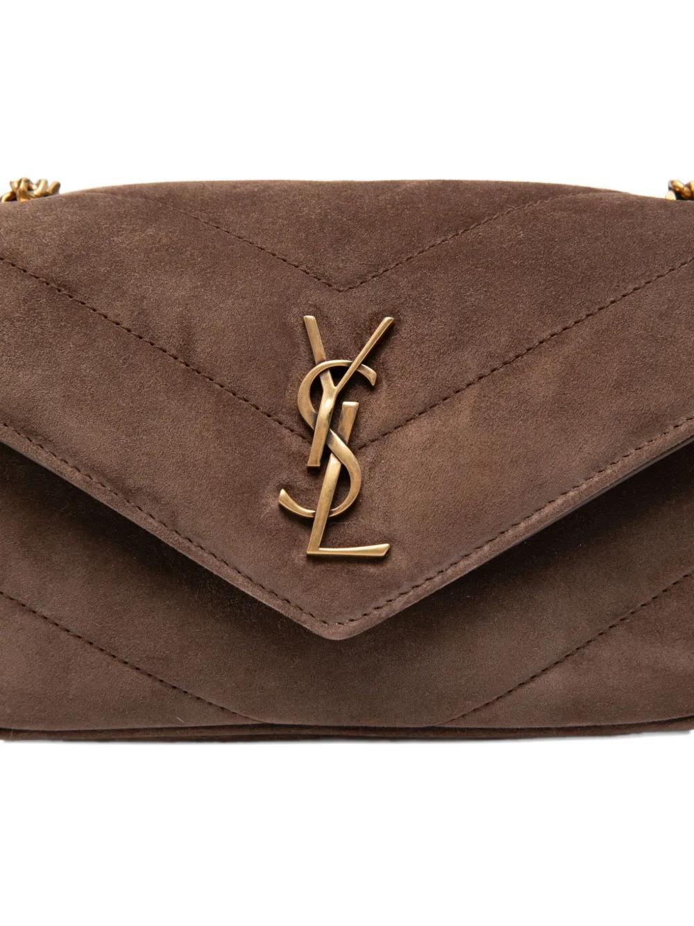 Saint Laurent mini Loulou logo-patch cross body bag - Brown