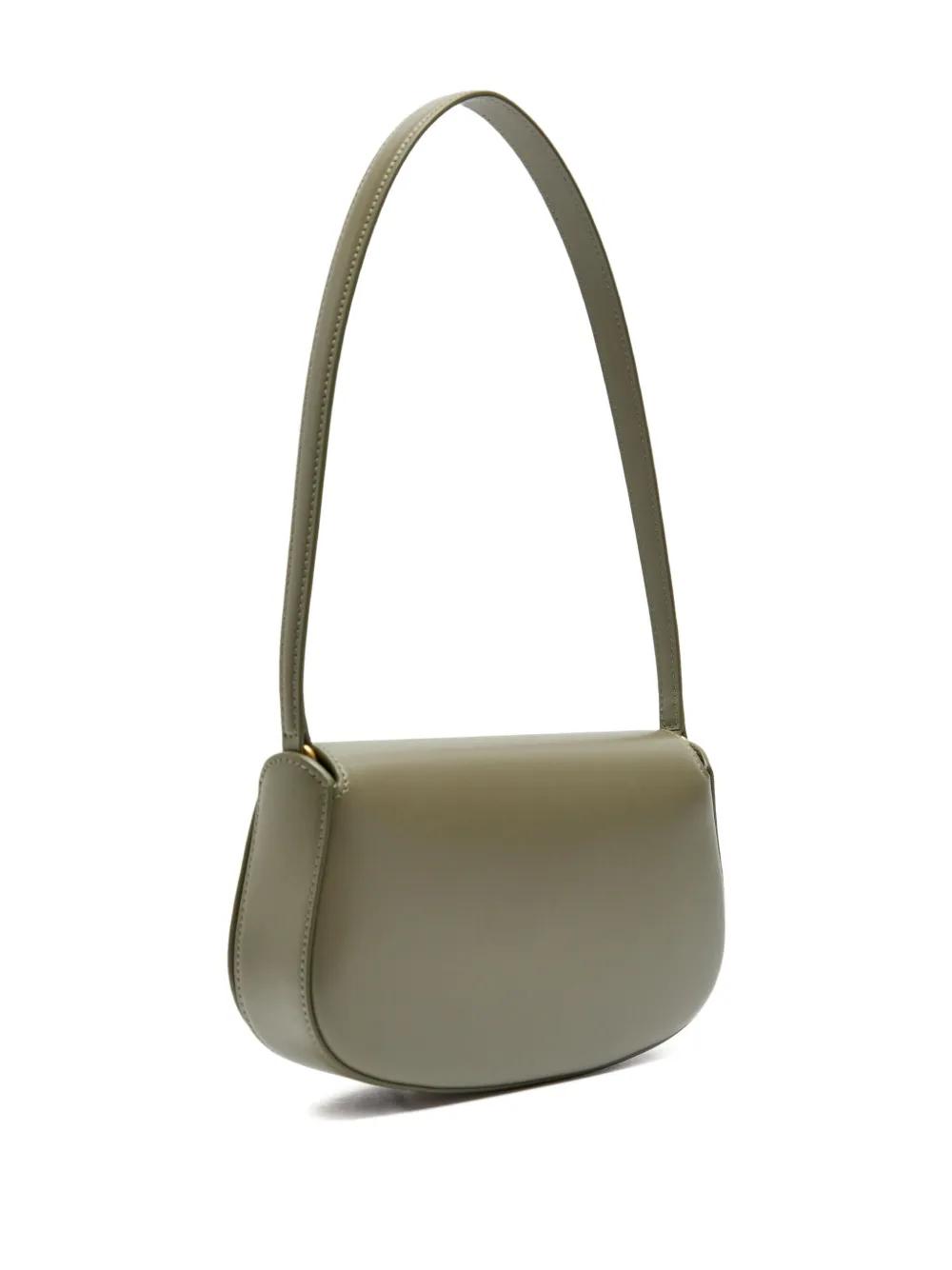 moss green gold-tone logo plaque curved base main compartment single shoulder strap
