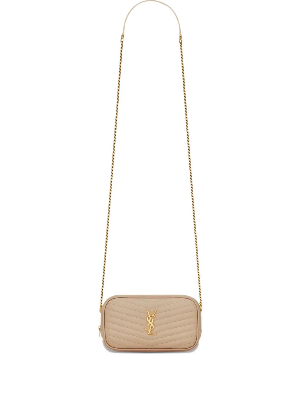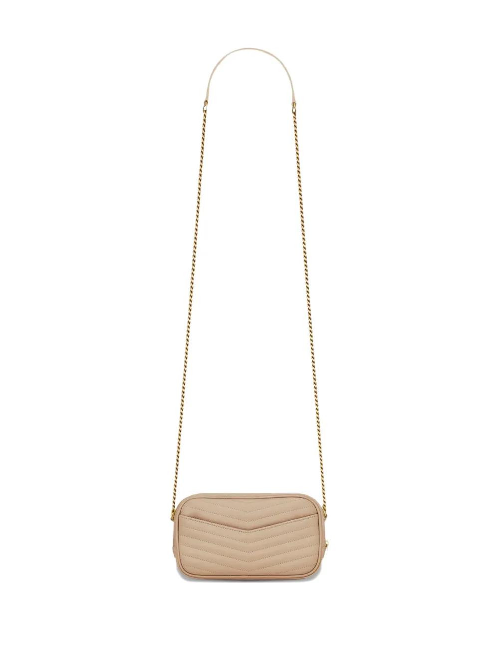 dark beige gold-tone hardware zip closure chain strap three card slots back slot