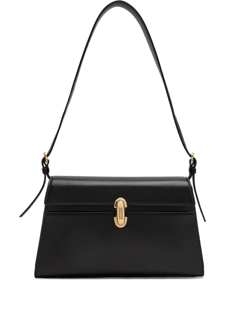 black gold-tone hardware top handle turn-lock fastening rectangular shape