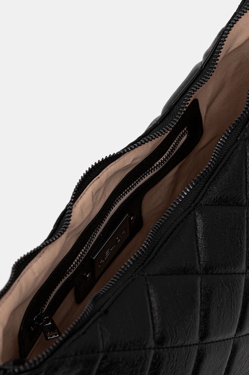 - Zapięcie na suwak. - Model z podszewką. - Nie mieści formatu A4. - Posiada dwie kieszenie wewenętrzne: jedna wsuwana, druga zapinana na suwak. - Torebka do noszenia w ręku lub na ramieniu. - Nieodpinany długi pasek bez regulacji. - Dołączony tekstylny worek zabezpiecza produkt przed kurzem. - Długość paska: 123 cm. - Głębokość: 9 cm. - Wysokość: 17 cm. - Szerokość u podstawy: 30 cm.