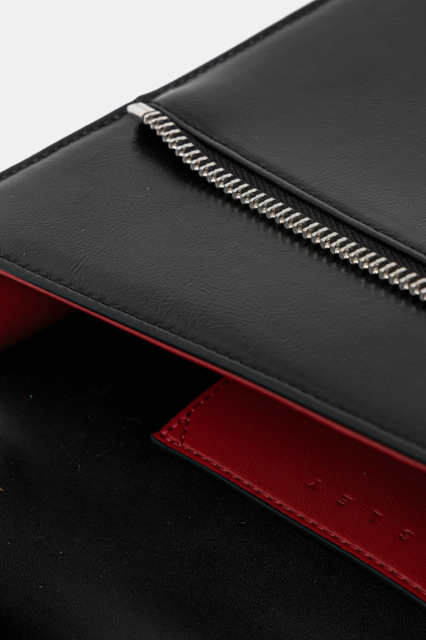 - Komora zapinana na suwak. - Wewnętrzna, wsuwana kieszeń na telefon. - Model bez podszewki. - Odpinany, regulowany pasek umożliwia indywidualne dopasowanie. - Nie mieści formatu A4. - Dołączony tekstylny worek zabezpiecza produkt przed kurzem. - Głębokość: 6 cm. - Wysokość: 17 cm. - Szerokość u podstawy: 25 cm.