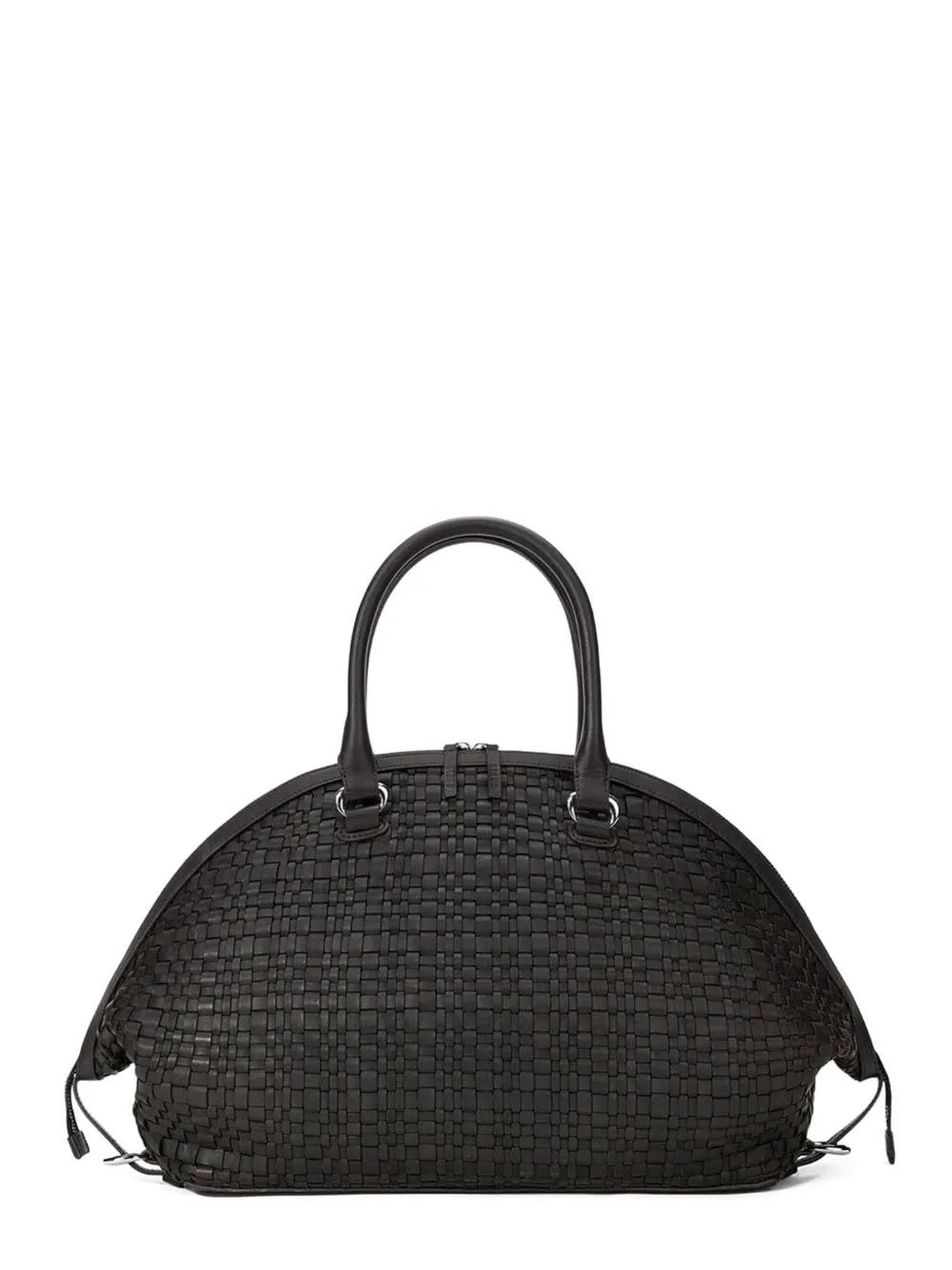 black leather monogram pattern zip fastening top handle detachable strap This piece comes complete with a protective dust bag.