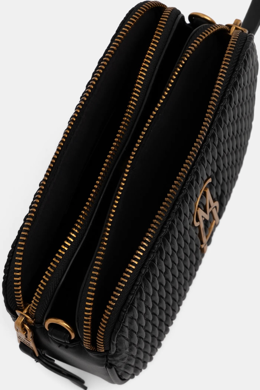 - Posiada trzy komory: jedna zapinana na magnes, dwie zapinane na suwak. - Wewnętrzna, wsuwana kieszeń, która ułatwia bezpieczne przechowywanie telefonu lub innych drobiazgów. - Model z podszewką. - Nie mieści formatu A4. - Odpinany pasek z regulacją. - Głębokość: 5,5 cm. - Wysokość: 13 cm. - Szerokość u podstawy: 20 cm. - Długość minimalna paska: 123 cm. - Długość maksymalna paska: 133 cm.