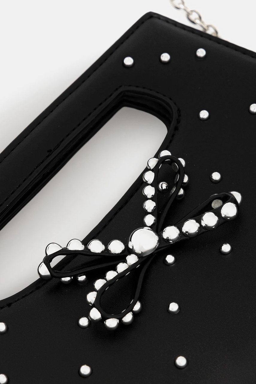 - Zapięcie na magnes. - Uchwyt do ręki. - Model z ozdobnymi eyeletami. - Odpinany łańcuch. - Nie mieści formatu A4. - Model z podszewką. - Wsuwana kieszonka wewnętrzna. - Dołączony tekstylny worek zabezpiecza produkt przed kurzem. - Długość paska: 120 cm. - Głębokość: 5 cm. - Wysokość: 17 cm. - Szerokość u podstawy: 24 cm.
