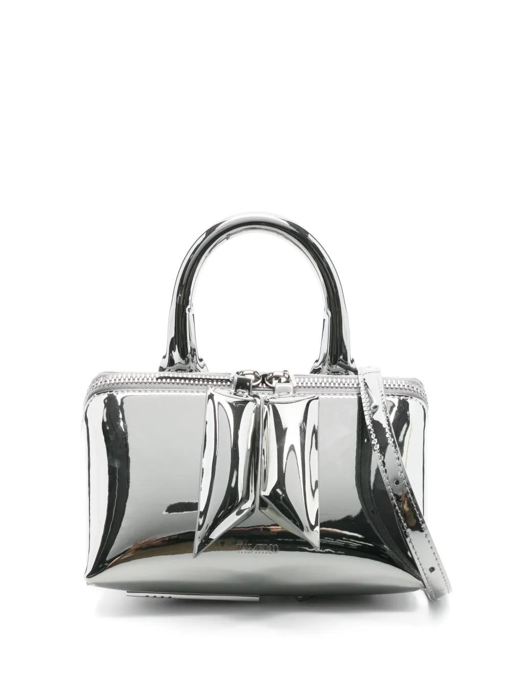 silver-tone two-way zip fastening single rolled top handle adjustable detachable shoulder strap This piece comes complete with a protective dust bag.