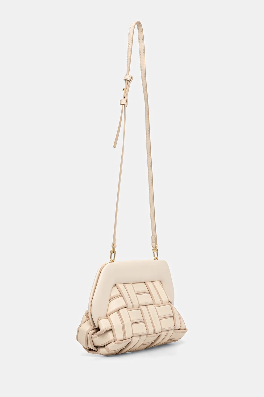 - Produkt zawiera materiały z włókien pochodzących z recyklingu. - Zapięcie na magnes. - Model z podszewką. - Nie mieści formatu A4. - Brak kieszeni wewnętrznych. - Torebka do noszenia w ręku lub na ramieniu. - Dopinany dłuższy pasek z regulacją. - Dołączony tekstylny worek zabezpiecza produkt przed kurzem. - Długość minimalna paska: 99 cm. - Długość maksymalna paska: 112 cm. - Głębokość: 9 cm. - Wysokość: 22 cm. - Szerokość u podstawy: 32 cm.