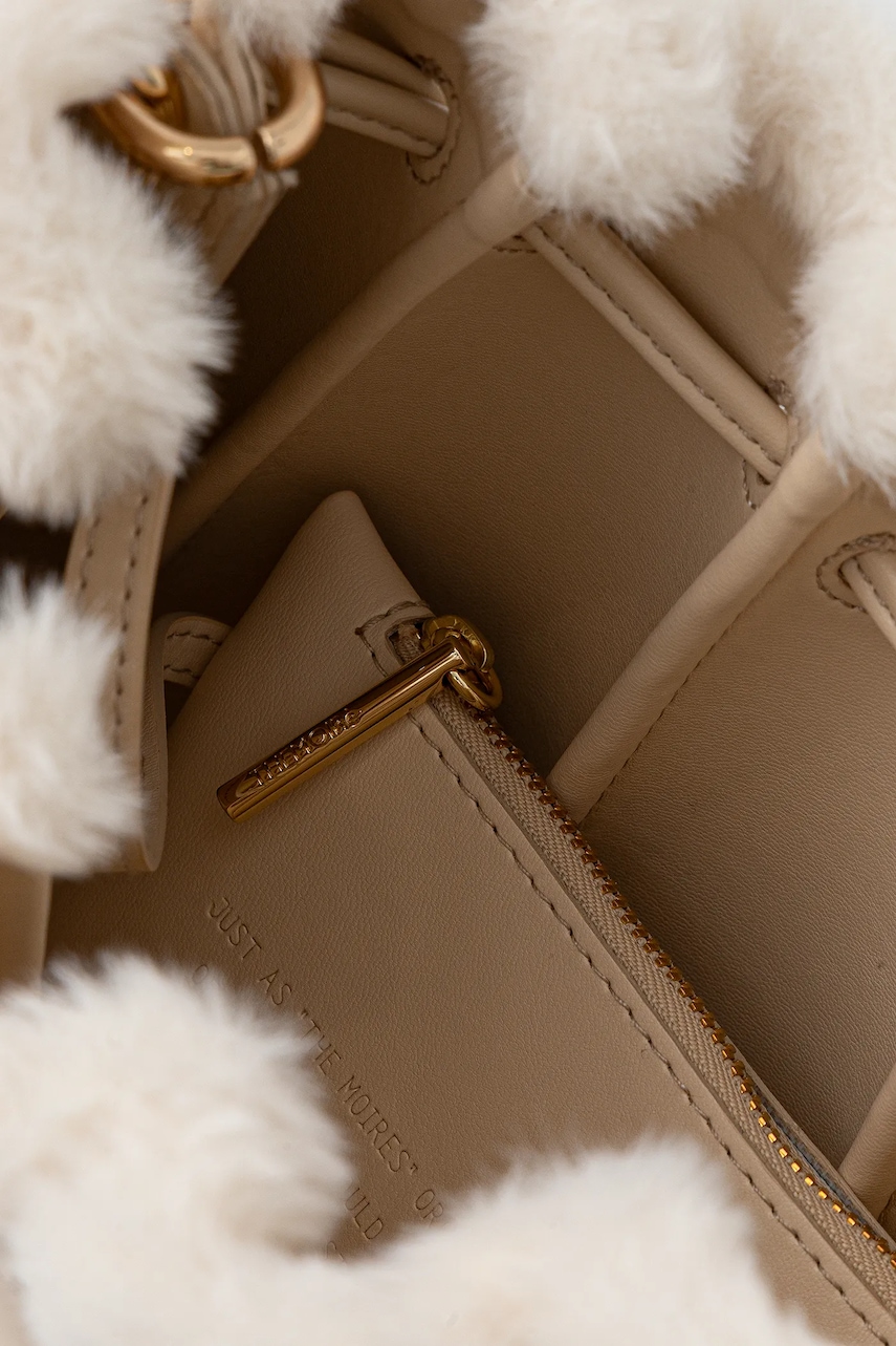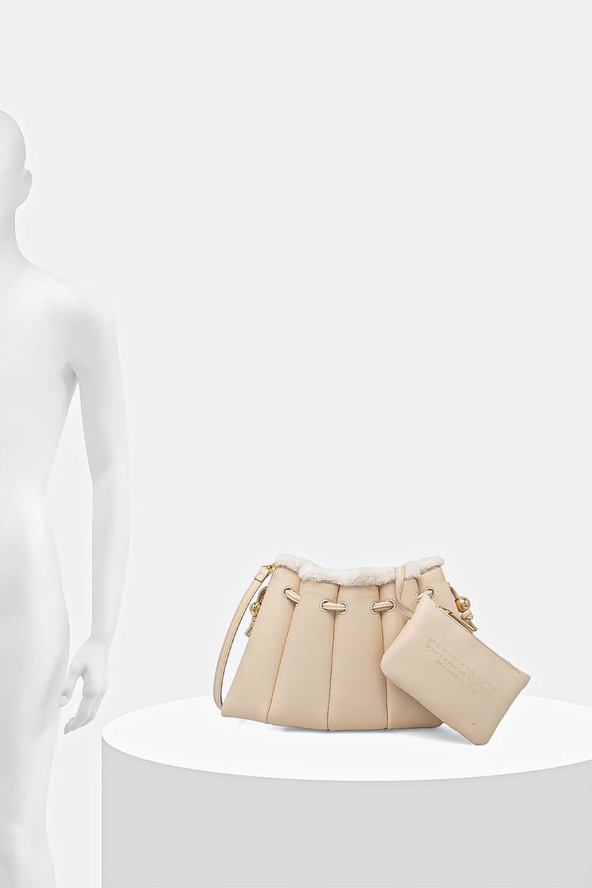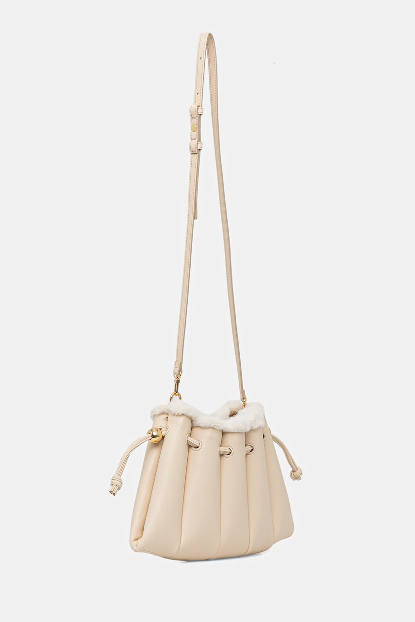 - THEMOIRè to włoska marka, której misją jest tworzenie mody przyjaznej środowisku. Produkuje torebki i akcesoria z innowacyjnych, zrównoważonych materiałów, takich jak włókna z liści ananasa, odpady z jabłek, korek, rafia czy materiały z recyklingu (np. plastikowe butelki i sieci rybackie). Celem marki jest minimalizowanie wpływu na środowisko i promowanie etycznej produkcji. - Model bez podszewki. - Odpinany pasek z regulacją. - Dołączony tekstylny worek zabezpiecza produkt przed kurzem. - Ozdobne wstawki ze sztucznego futerka. - Do modelu dołączona saszetka zapinana na suwak. - Komora ściągana troczkami. - Ozdobne detale. - Długość minimalna paska: 100 cm. - Długość maksymalna paska: 117 cm. - Głębokość: 5 cm. - Wysokość: 20 cm. - Szerokość u podstawy: 34 cm.