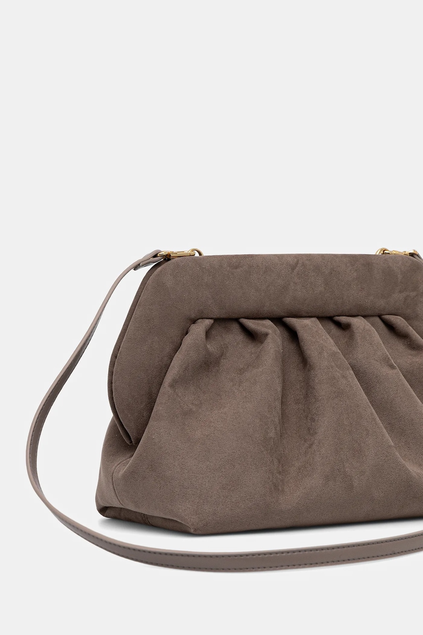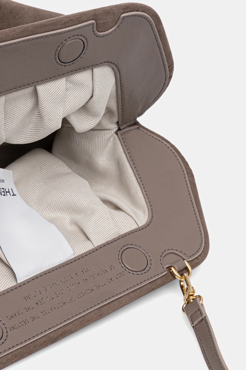 - Produkt zawiera materiały z włókien pochodzących z recyklingu. - Zapięcie na magnes. - Model z podszewką. - Nie mieści formatu A4. - Brak kieszeni wewnętrznych. - Dopinany dłuższy pasek z regulacją. - Torebka do noszenia w ręku lub na ramieniu. - Dołączony tekstylny worek zabezpiecza produkt przed kurzem. - Długość minimalna paska: 101 cm. - Długość maksymalna paska: 112 cm. - Głębokość: 14 cm. - Wysokość: 21 cm. - Szerokość u podstawy: 29 cm.