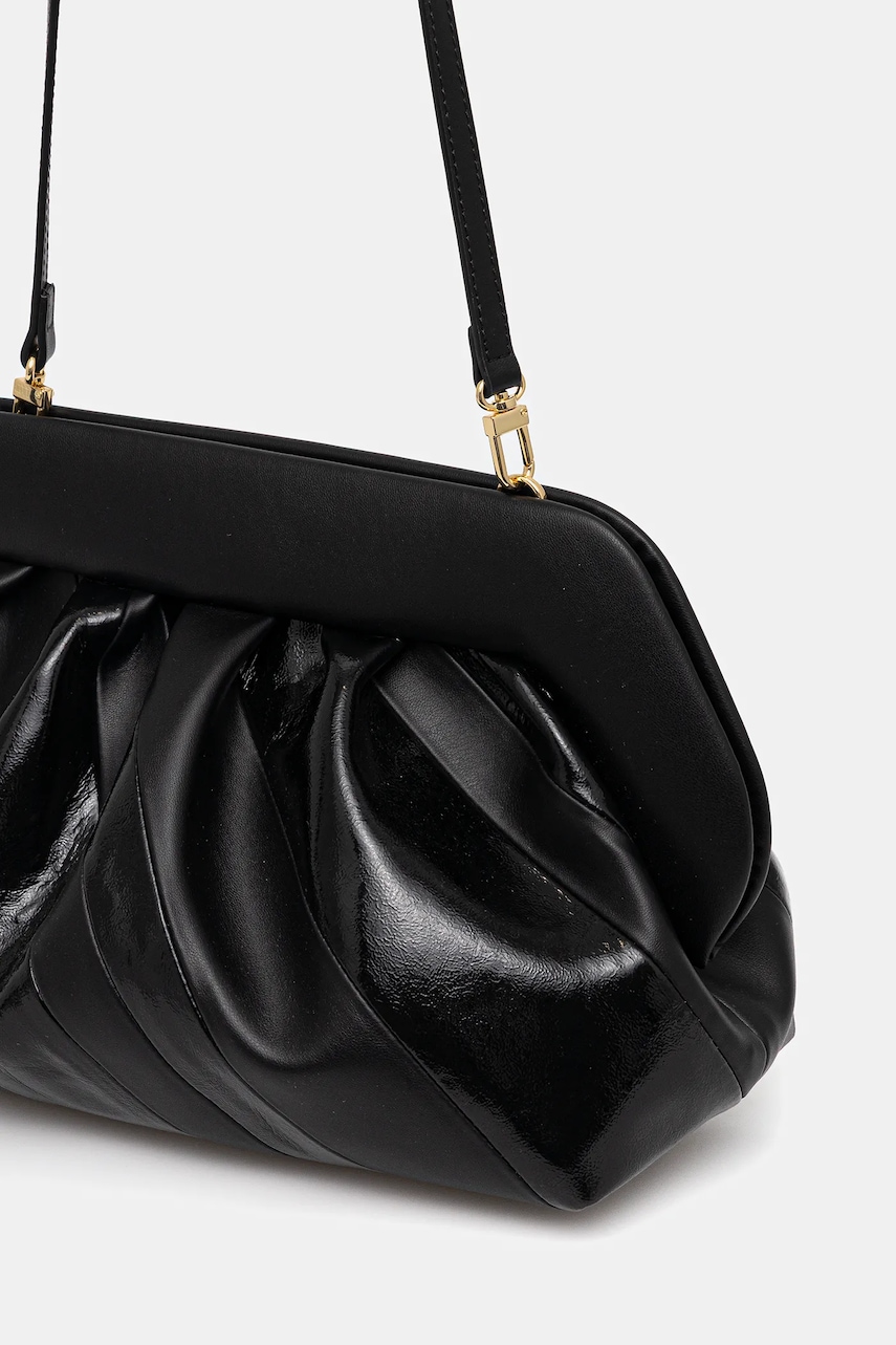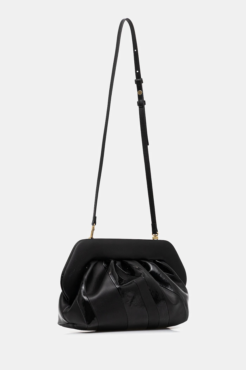 - Produkt zawiera materiały z włókien pochodzących z recyklingu. - Komora zapinana na magnes. - Brak kieszeni wewnętrznych. - Model z podszewką. - Nie mieści formatu A4. - Odpinany pasek z regulacją. - Dołączony tekstylny worek zabezpiecza produkt przed kurzem. - Głębokość: 13,5 cm. - Szerokość u podstawy: 30 cm. - Wysokość: 22 cm. - Długość minimalna paska: 98 cm. - Długość maksymalna paska: 113 cm.
