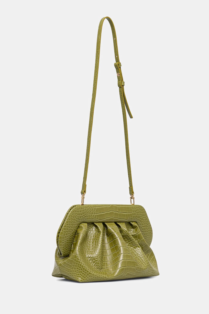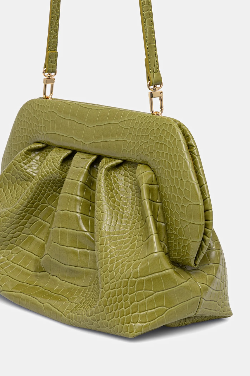 - Produkt zawiera materiały z włókien pochodzących z recyklingu. - Komora zapinana na magnes. - Brak kieszeni wewnętrznych. - Nie mieści formatu A4. - Odpinany pasek z regulacją. - Dołączony tekstylny worek zabezpiecza produkt przed kurzem. - Głębokość: 13,5 cm. - Wysokość: 21,5 cm. - Szerokość u podstawy: 29 cm. - Długość minimalna paska: 96 cm. - Długość maksymalna paska: 111 cm.