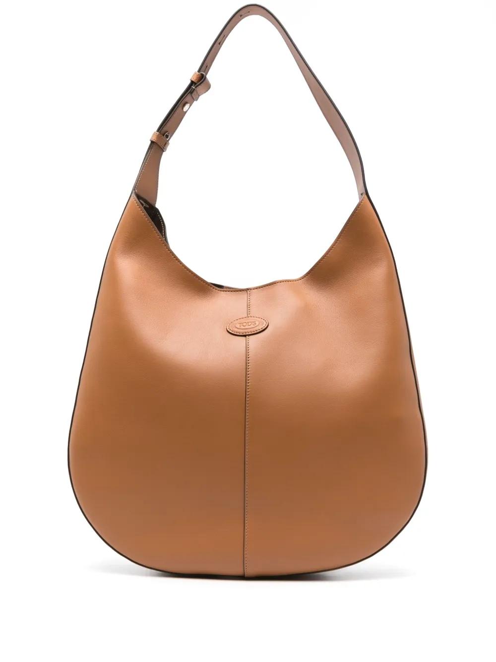 cognac brown magnetic fastening adjustable shoulder strap removable pouch logo patch to the front